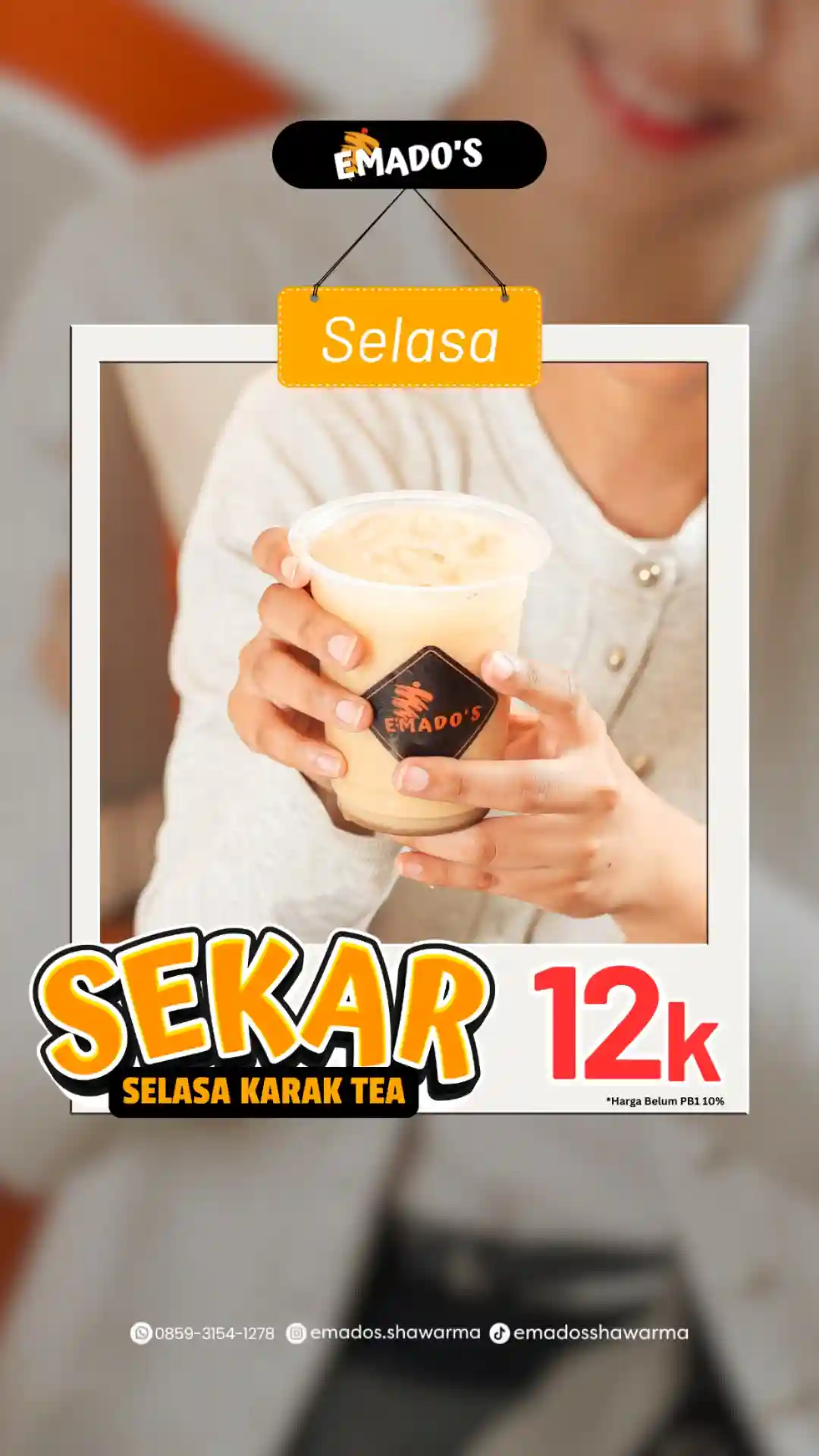 Emados Shawarma menghadirkan promo minuman melalui program Selasa Karak Tea dengan harga Rp12.000. Promo ini ditujukan bagi pelanggan yang ingin menikmati teh karak bercita rasa creamy dan wangi rempah dengan harga lebih terjangkau.