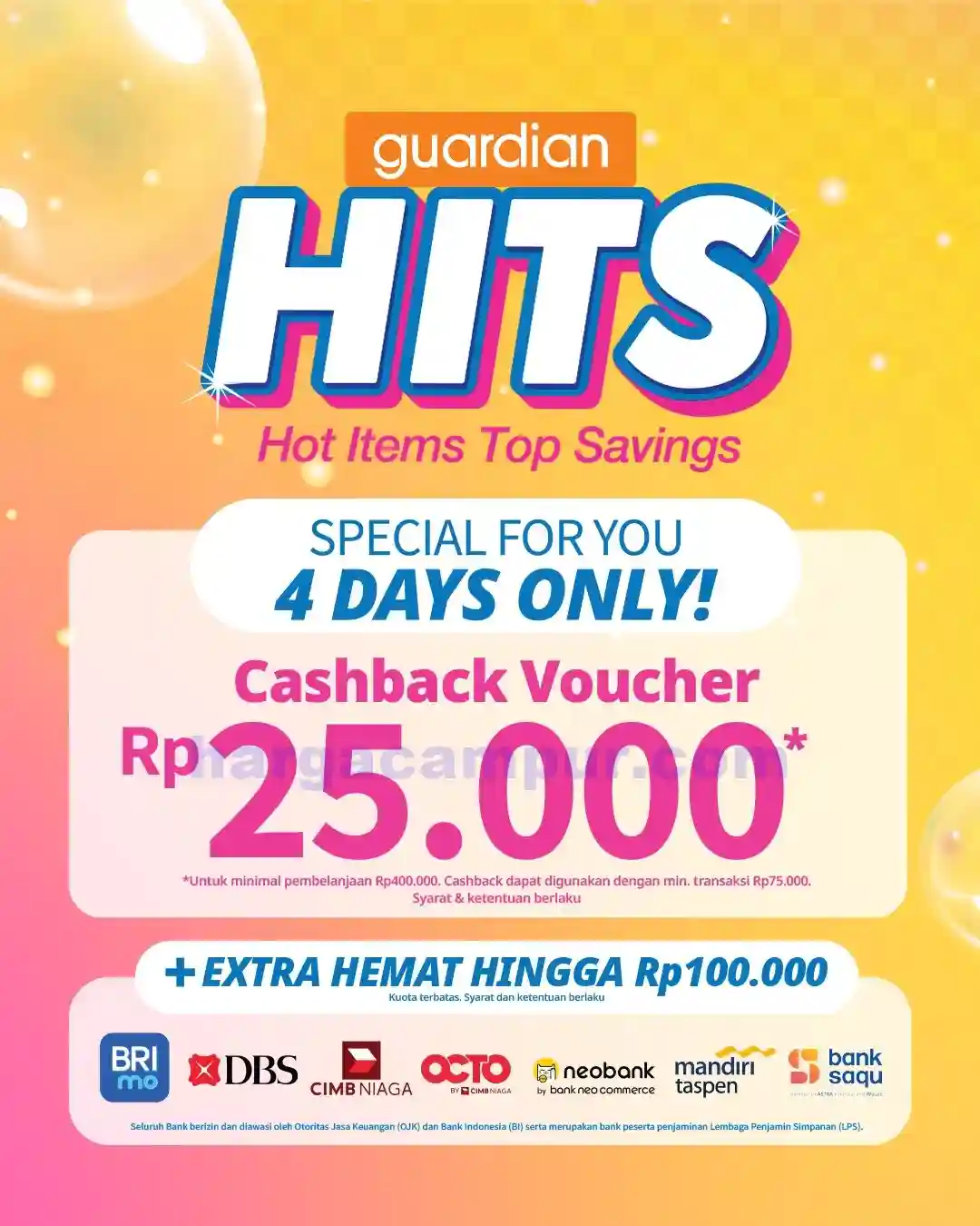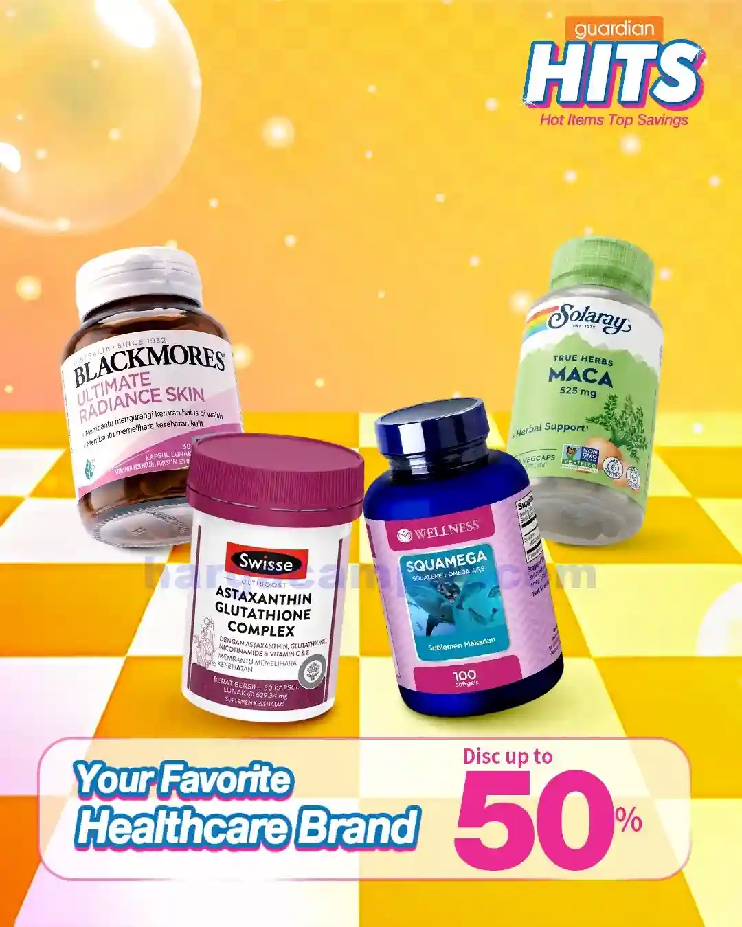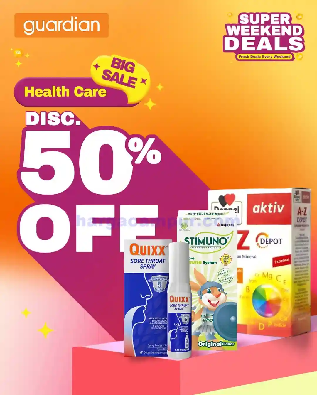 Promo HITS kali ini menghadirkan diskon menarik untuk berbagai produk best seller Guardian, seperti masker wajah, vitamin, dan skincare populer. Cocok buat kamu yang ingin tampil fresh tanpa bikin dompet tipis.