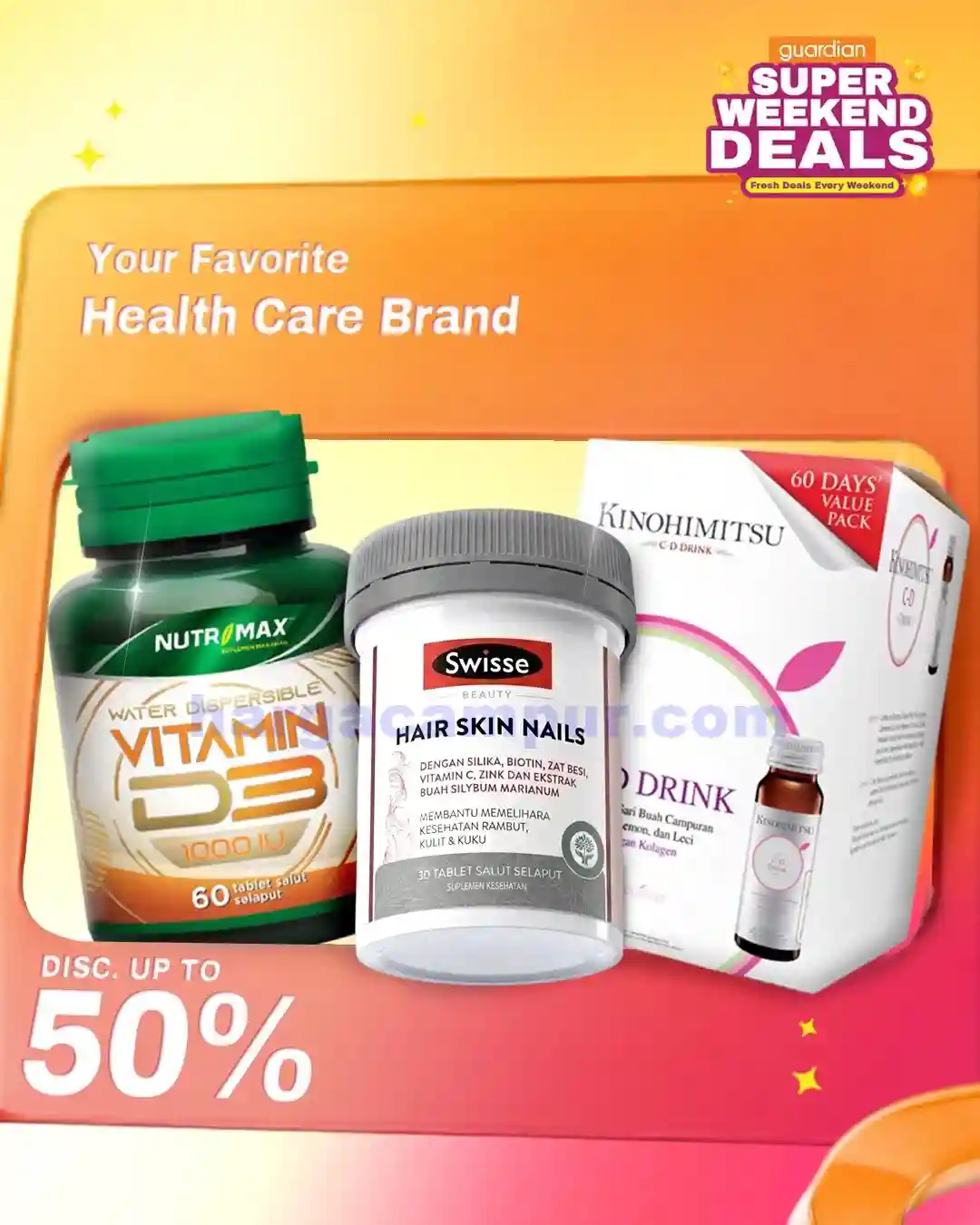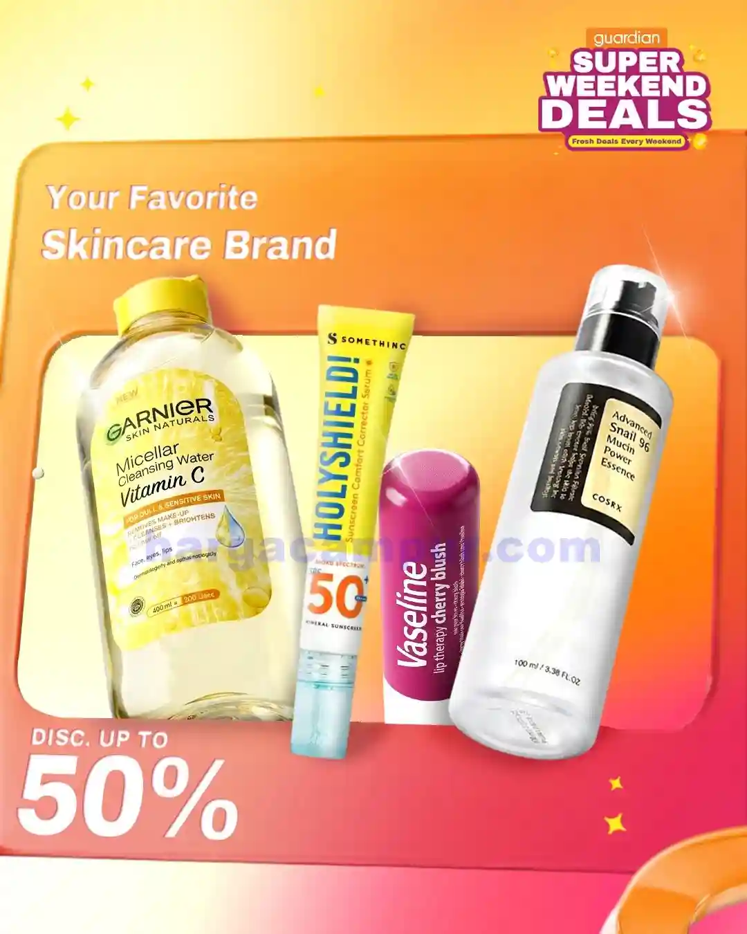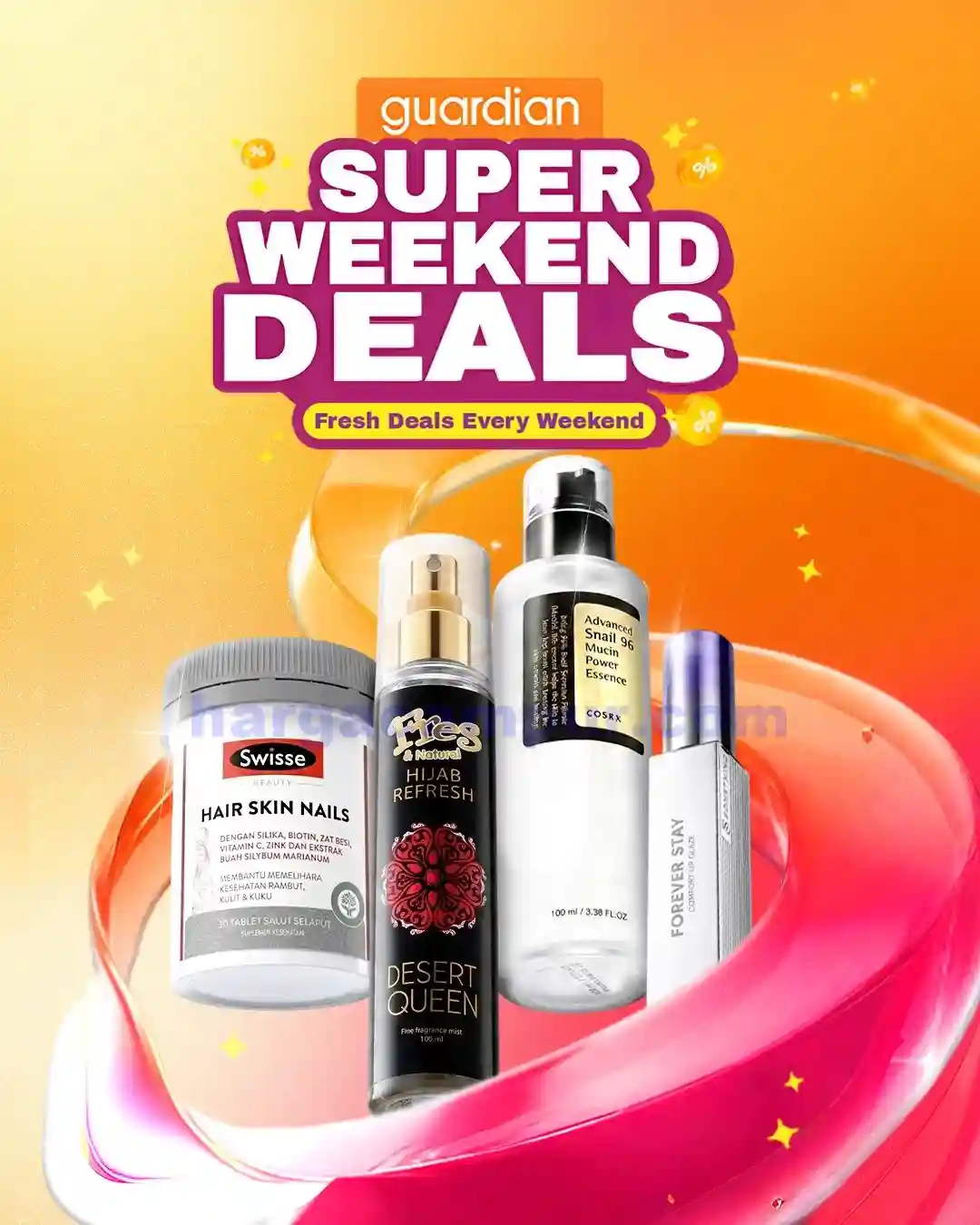 Promo Super Weekend Deals kali ini menghadirkan diskon menarik untuk berbagai produk best seller Guardian, seperti masker wajah, vitamin, dan skincare populer. Cocok buat kamu yang ingin tampil fresh tanpa bikin dompet tipis.