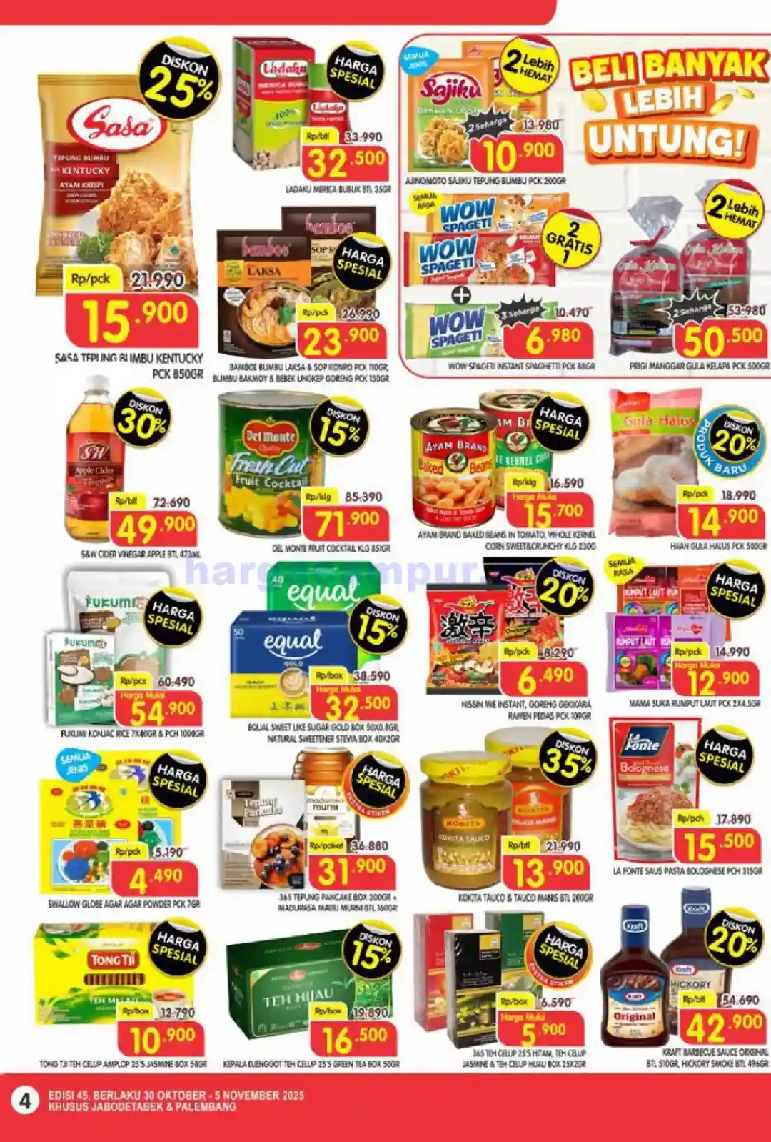 - Kebutuhan Pokok: Beras, minyak goreng, tepung, gula, dan lainnya dengan diskon hingga 45%.