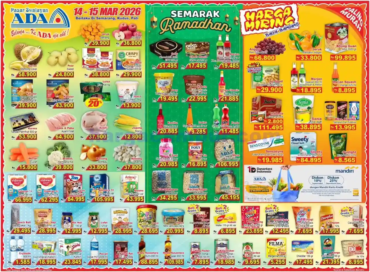 Katalog Promo Ada Swalayan Weekend Terbaru – Sebagai seorang suami dan ayah dari dua anak yang sedang aktif-aktifnya, saya benar-benar merasakan pentingnya mengatur keuangan rumah tangga dengan cermat. Apalagi belakangan ini harga kebutuhan pokok terus merangkak naik. Kalau tidak pintar-pintar mencari peluang untuk berhemat, bisa-bisa anggaran bulanan jebol sebelum akhir bulan tiba.