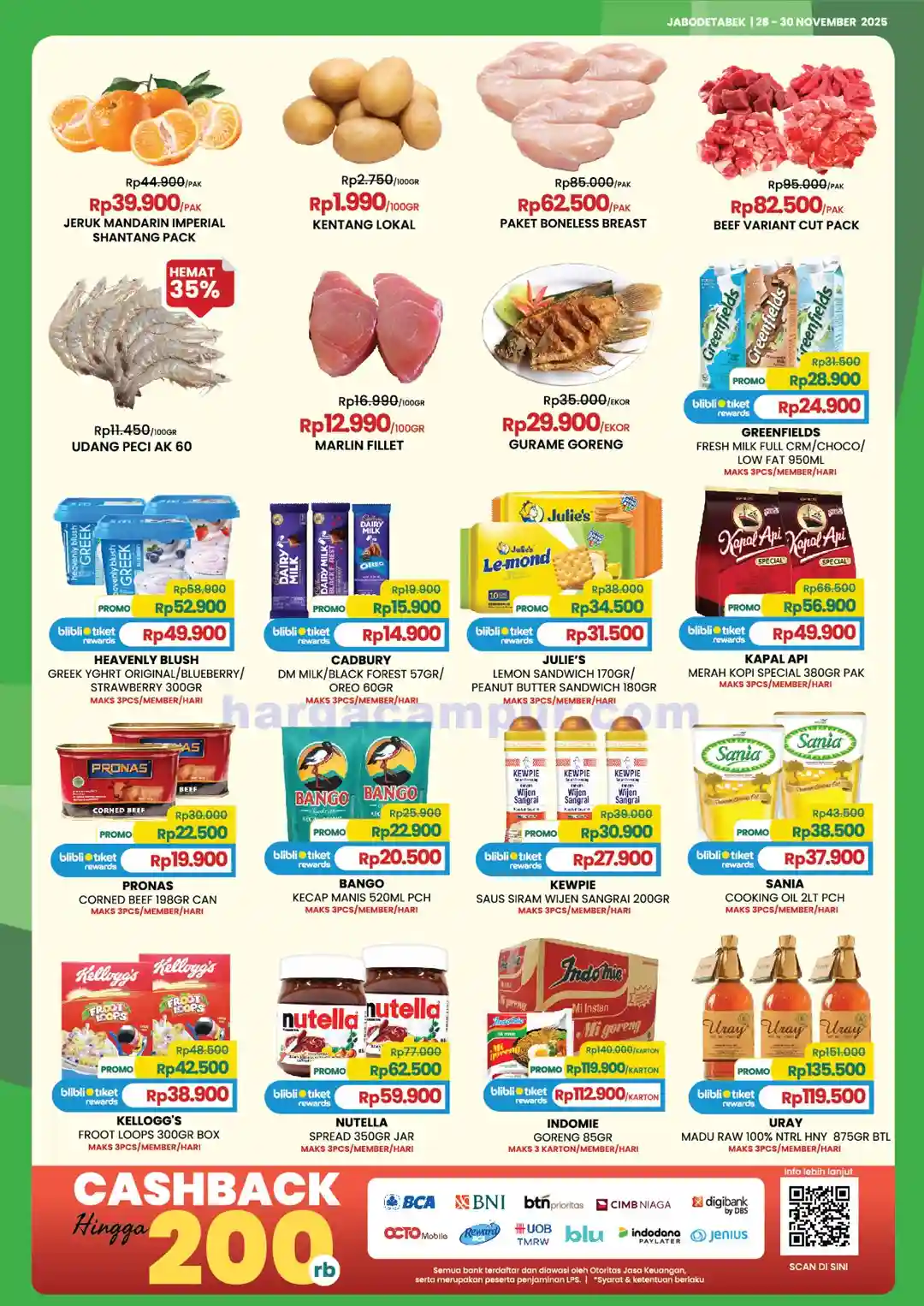 Berdasarkan pengamatan dan pengalaman saya belanja selama promo weekend sebelumnya, ada beberapa kategori produk yang hampir selalu masuk daftar diskon. Berikut ini beberapa contohnya yang kemungkinan besar juga tersedia dalam promo 28 – 30 November 2025: