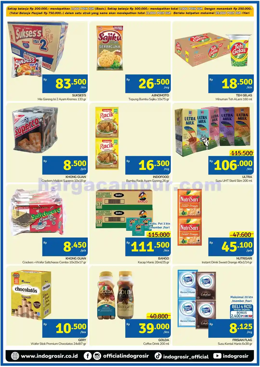 Indogrosir dikenal sebagai salah satu pusat perkulakan yang menyediakan produk kebutuhan sehari-hari, baik untuk konsumen rumah tangga maupun pedagang kecil. Tak heran jika banyak orang memilih belanja di sini karena selisih harganya yang cukup signifikan dibandingkan dengan swalayan biasa. Apalagi ketika mereka mengeluarkan promo berkala seperti ini selalu jadi momen yang ditunggu-tunggu.