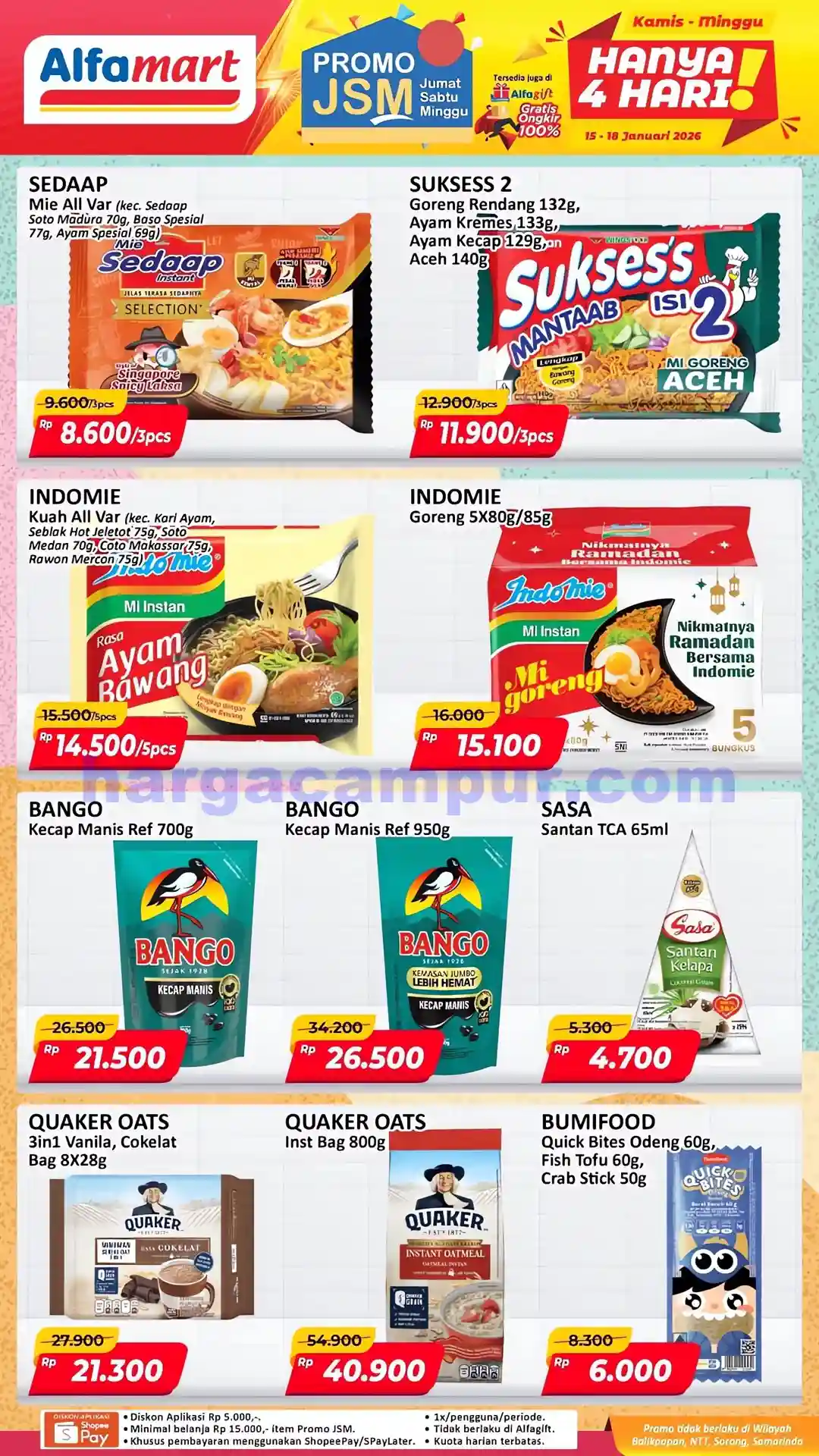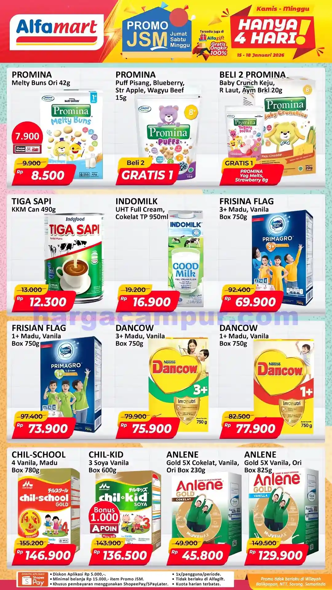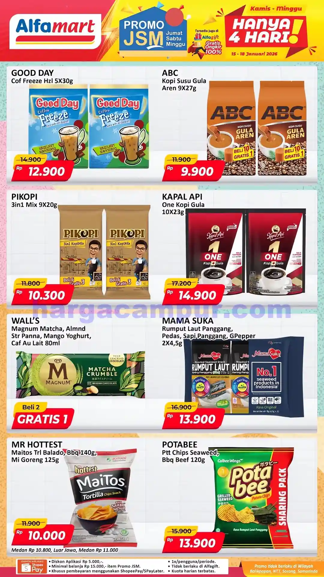 Tips Hemat: Manfaatkan promo JSM Alfamart hanya selama 16 – 18 Januari 2026, karena stok dan periode terbatas. Cek langsung di gerai Alfamart terdekat atau melalui aplikasi resmi untuk info ketersediaan di lokasi Anda.