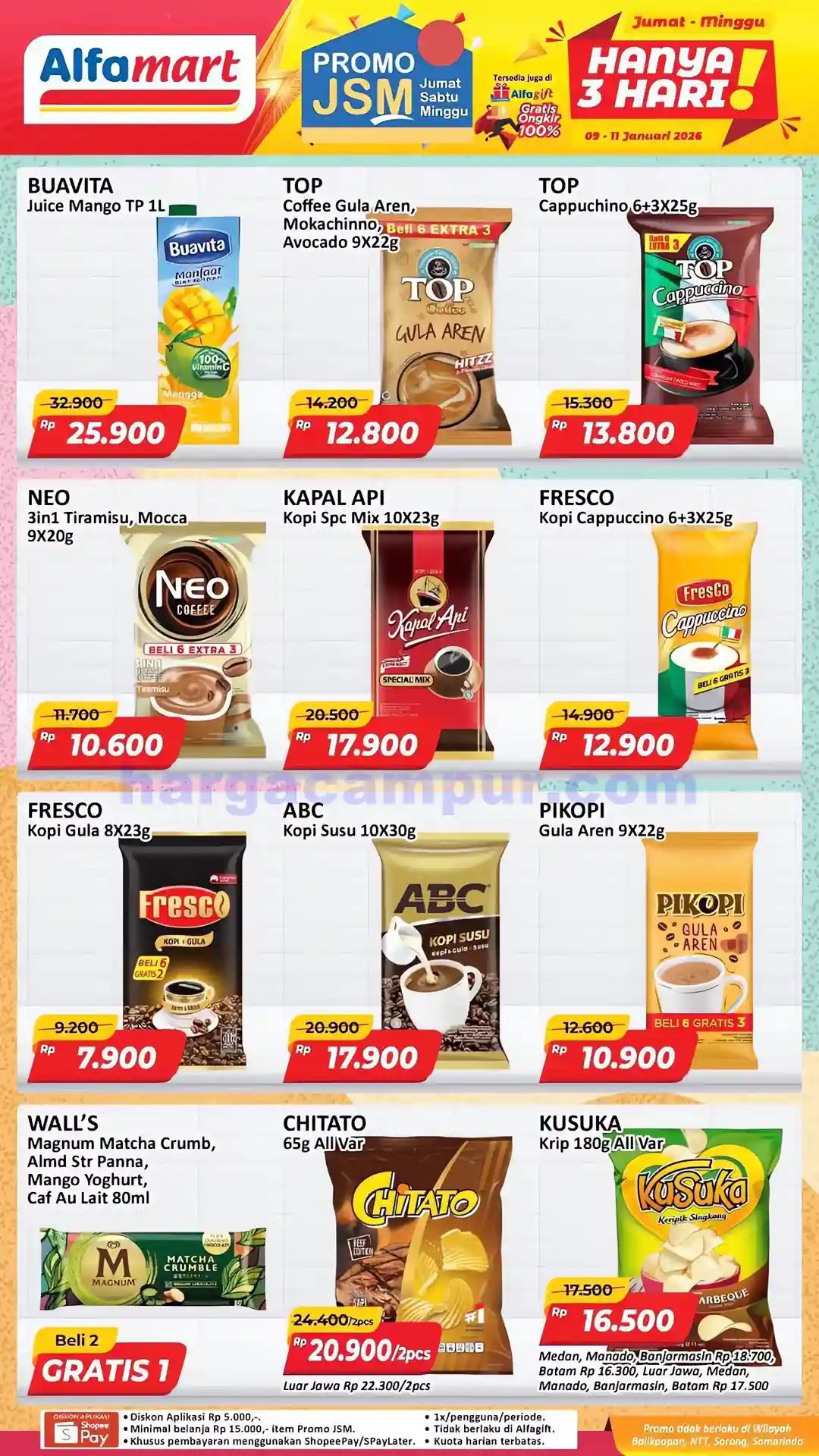 Tips Hemat: Manfaatkan promo JSM Alfamart hanya selama 9–11 Januari 2026, karena stok dan periode terbatas. Cek langsung di gerai Alfamart terdekat atau melalui aplikasi resmi untuk info ketersediaan di lokasi Anda.