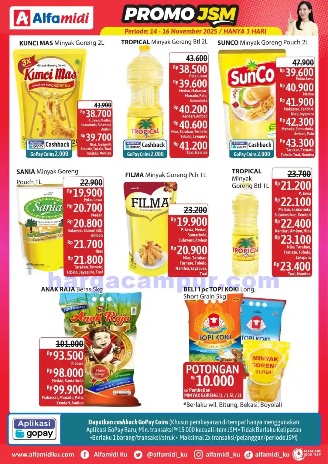 Katalog JSM Alfamidi pada awal November 2025 ini memuat berbagai produk dari kategori yang berbeda. Produk-produk berikut ini menjadi sorotan karena diskonnya yang cukup signifikan dan sangat relevan dengan kebutuhan harian masyarakat: