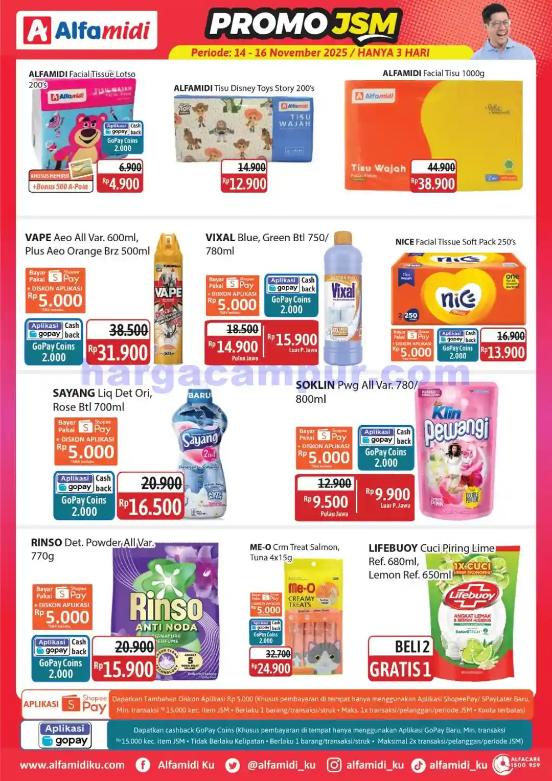 Di minggu ini, periode promo berlaku dari tanggal 14 hingga 16 November 2025. Alfamidi menghadirkan berbagai penawaran menarik untuk produk kebutuhan harian, makanan, minuman, hingga perlengkapan rumah tangga. Promo-promo ini tentunya tidak hanya dinanti oleh para ibu rumah tangga, tapi juga oleh anak kos, pekerja kantoran, hingga pebisnis kecil yang ingin membeli stok barang dalam jumlah banyak.