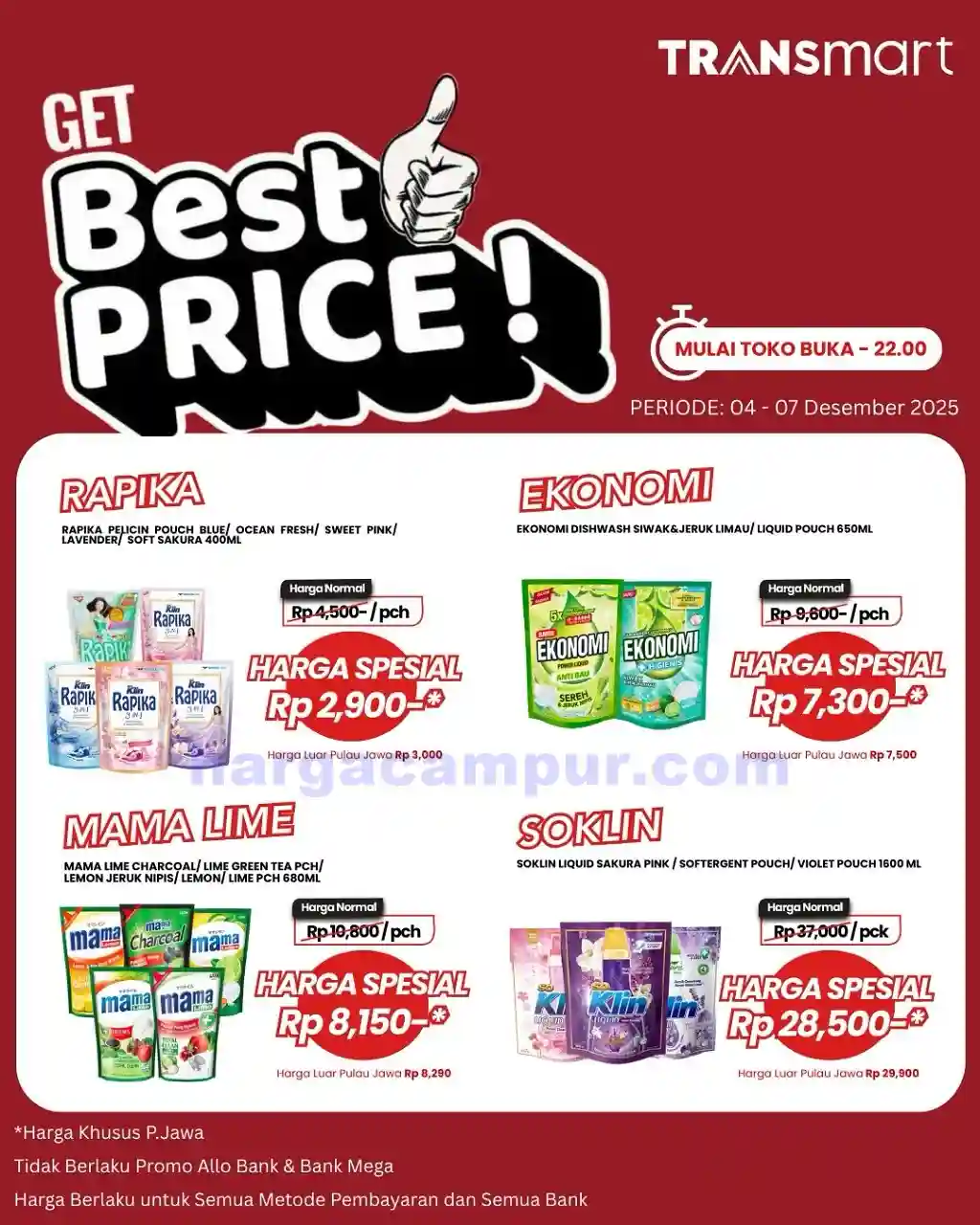 Sabun cuci piring, deterjen, dan pembersih lantai kembali ditawarkan dalam promo bundling dan diskon satuan. Biasanya, produk-produk ini paling cepat habis karena memang paling dicari.