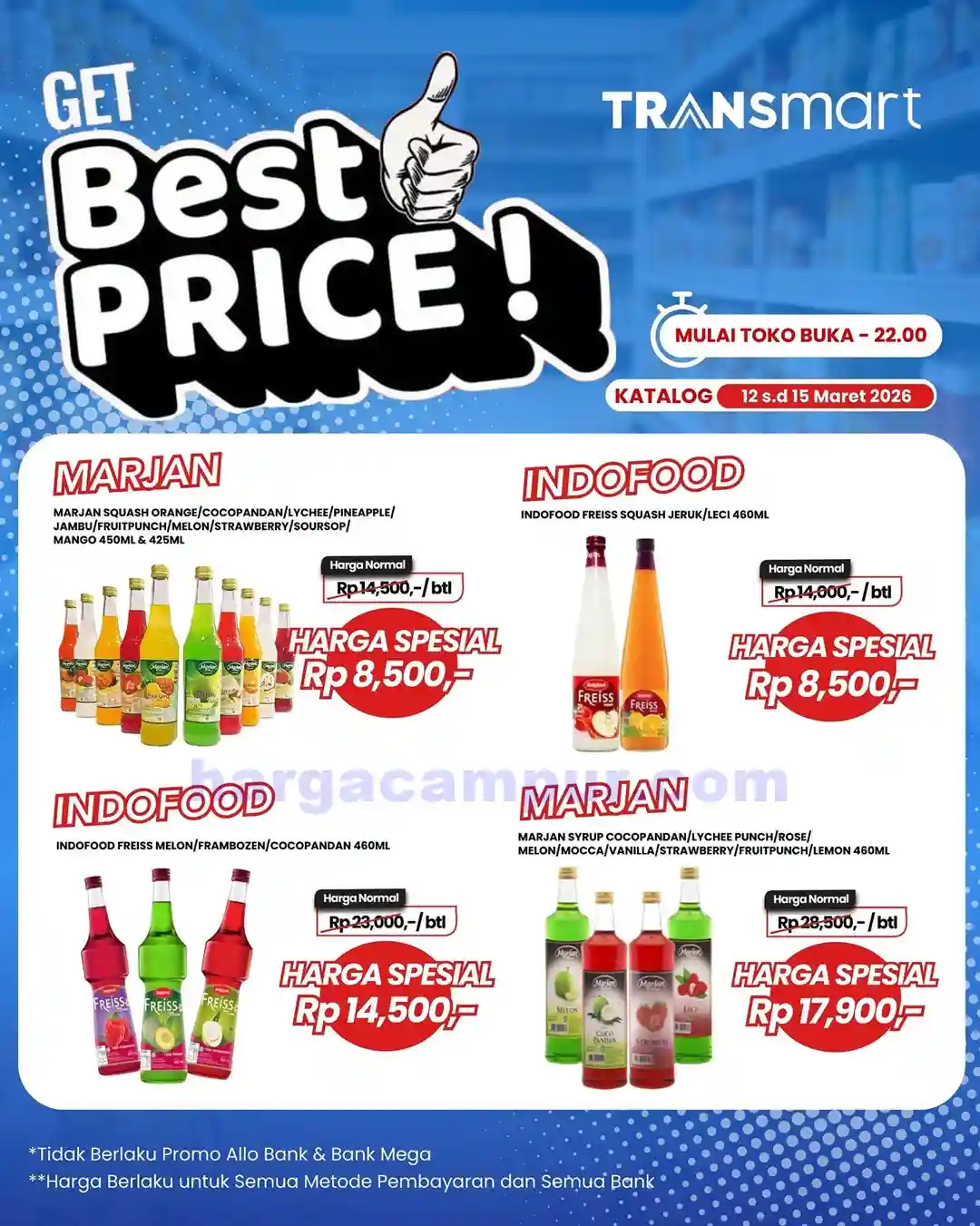Promo ini berlaku di hampir semua cabang Carrefour dan Transmart di seluruh Indonesia. Biasanya katalog terbaru mereka rilis tiap Kamis malam atau Jumat pagi. Itu sebabnya banyak pelanggan setia termasuk saya yang sudah standby menunggu info terbarunya di pagi hari.