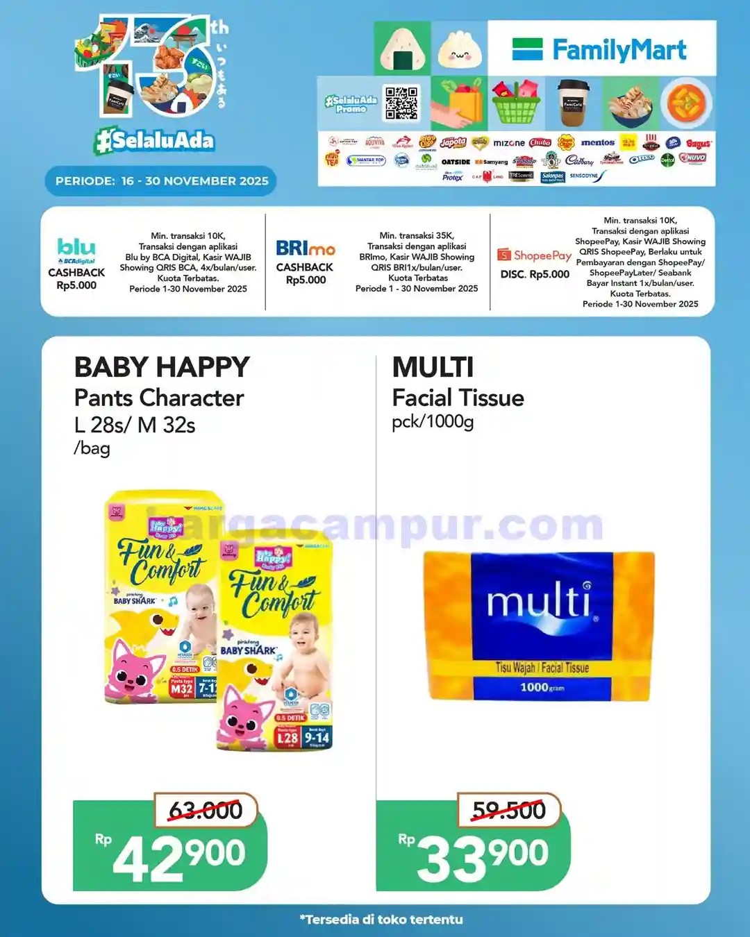 Promo JSM FamilyMart periode 21 – 23 November 2025 merupakan kesempatan terbaik untuk memenuhi kebutuhan sehari-hari dengan harga yang jauh lebih murah. Mulai dari makanan siap saji, kebutuhan dapur, perlengkapan bayi, hingga produk kesehatan semuanya bisa Anda temukan dalam satu tempat dengan harga yang bersaing.