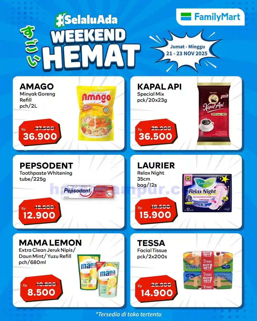 Promo JSM FamilyMart Weekend Terbaru – Akhir pekan bukan hanya waktu yang pas untuk bersantai, tetapi juga momen terbaik untuk berbelanja kebutuhan sehari-hari. Terutama bagi Anda yang ingin berhemat tanpa harus mengorbankan kualitas, akhir pekan menjadi waktu yang tepat untuk memanfaatkan berbagai promo menarik dari ritel-ritel besar. Salah satu ritel yang kini semakin populer di kalangan masyarakat urban Indonesia adalah FamilyMart. Menyambut minggu awal di bulan November 2025, FamilyMart kembali menghadirkan Katalog Promo JSM (Jumat-Sabtu-Minggu) FamilyMart Terbaru yang berlangsung mulai 21 – 23 November 2025.