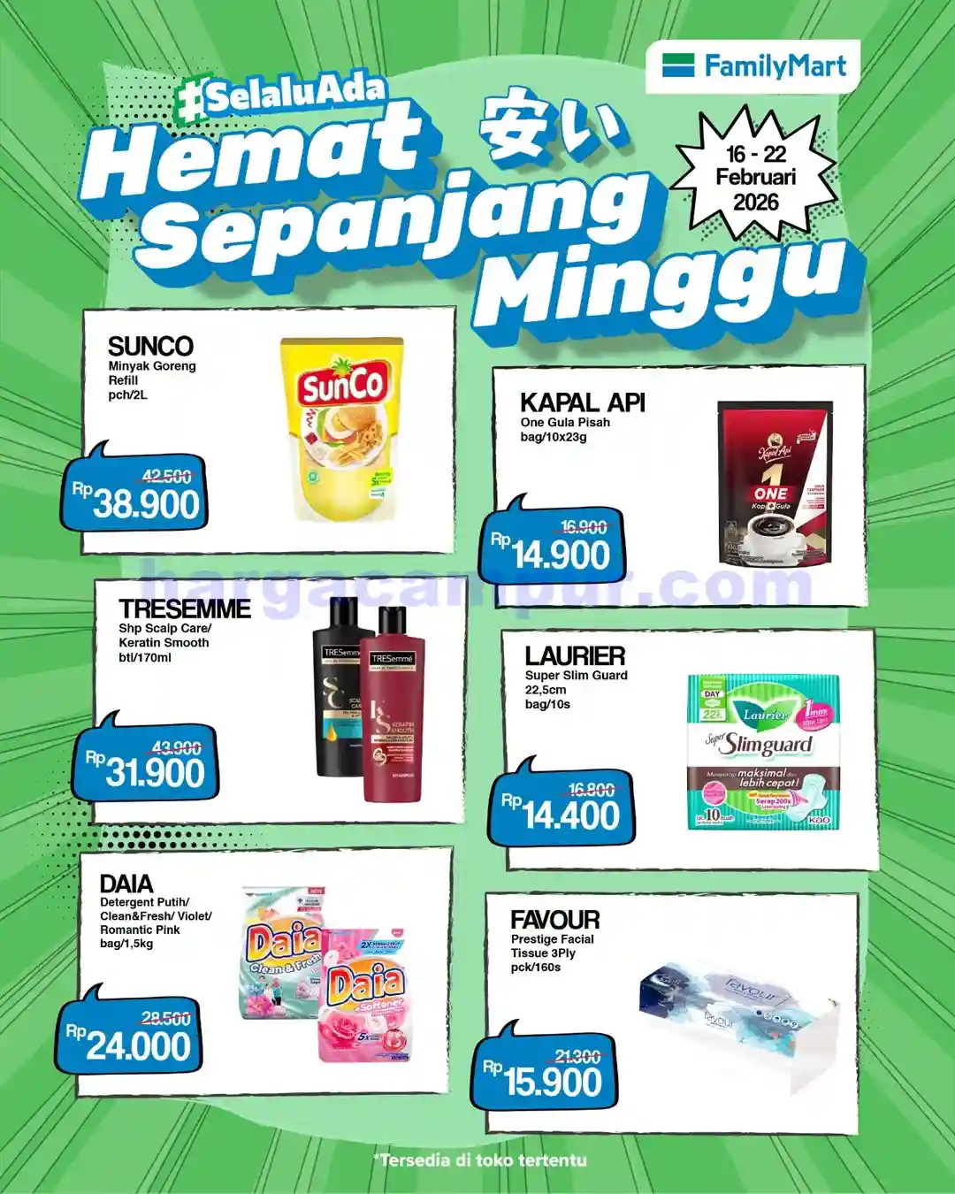 Promo JSM FamilyMart periode 20 – 22 Februari 2026 merupakan kesempatan terbaik untuk memenuhi kebutuhan sehari-hari dengan harga yang jauh lebih murah. Mulai dari makanan siap saji, kebutuhan dapur, perlengkapan bayi, hingga produk kesehatan semuanya bisa Anda temukan dalam satu tempat dengan harga yang bersaing.