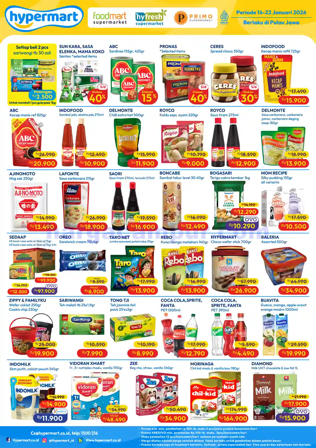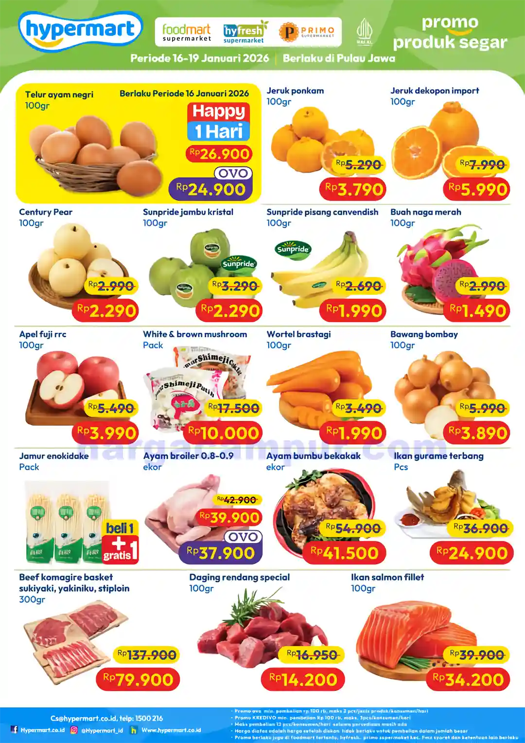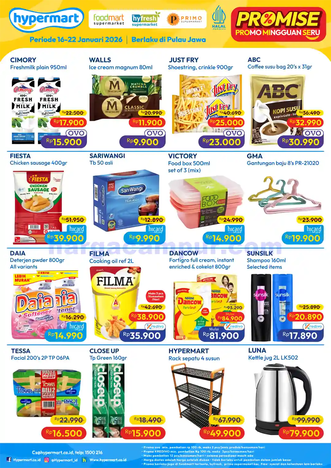 Catatan: Harga dan promo berlaku di seluruh Hypermart selama periode 16 – 18 Januari 2026, dengan beberapa produk hanya tersedia di area tertentu. Stok terbatas, segera kunjungi Hypermart terdekat untuk mendapatkan penawaran terbaik.