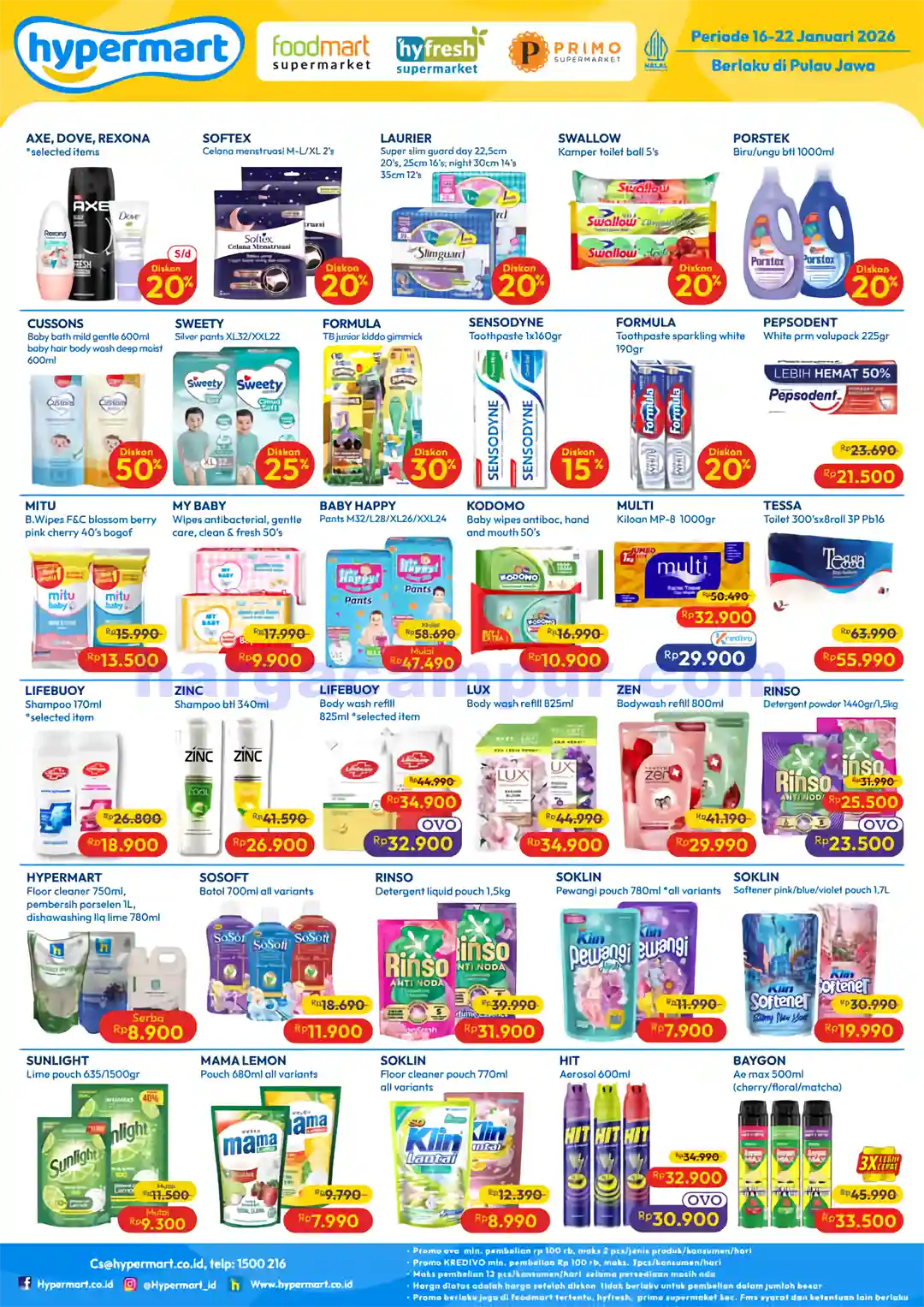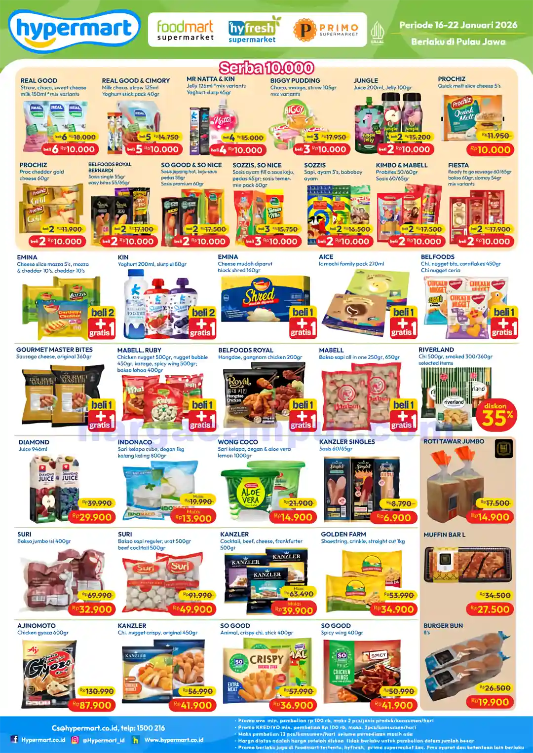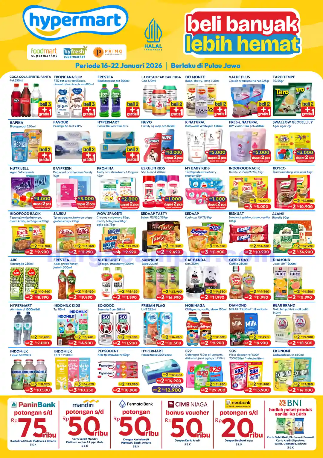 Catatan: Harga dan promo berlaku di seluruh Hypermart selama periode 16 – 18 Januari 2026, dengan beberapa produk hanya tersedia di area tertentu. Stok terbatas, segera kunjungi Hypermart terdekat untuk mendapatkan penawaran terbaik.