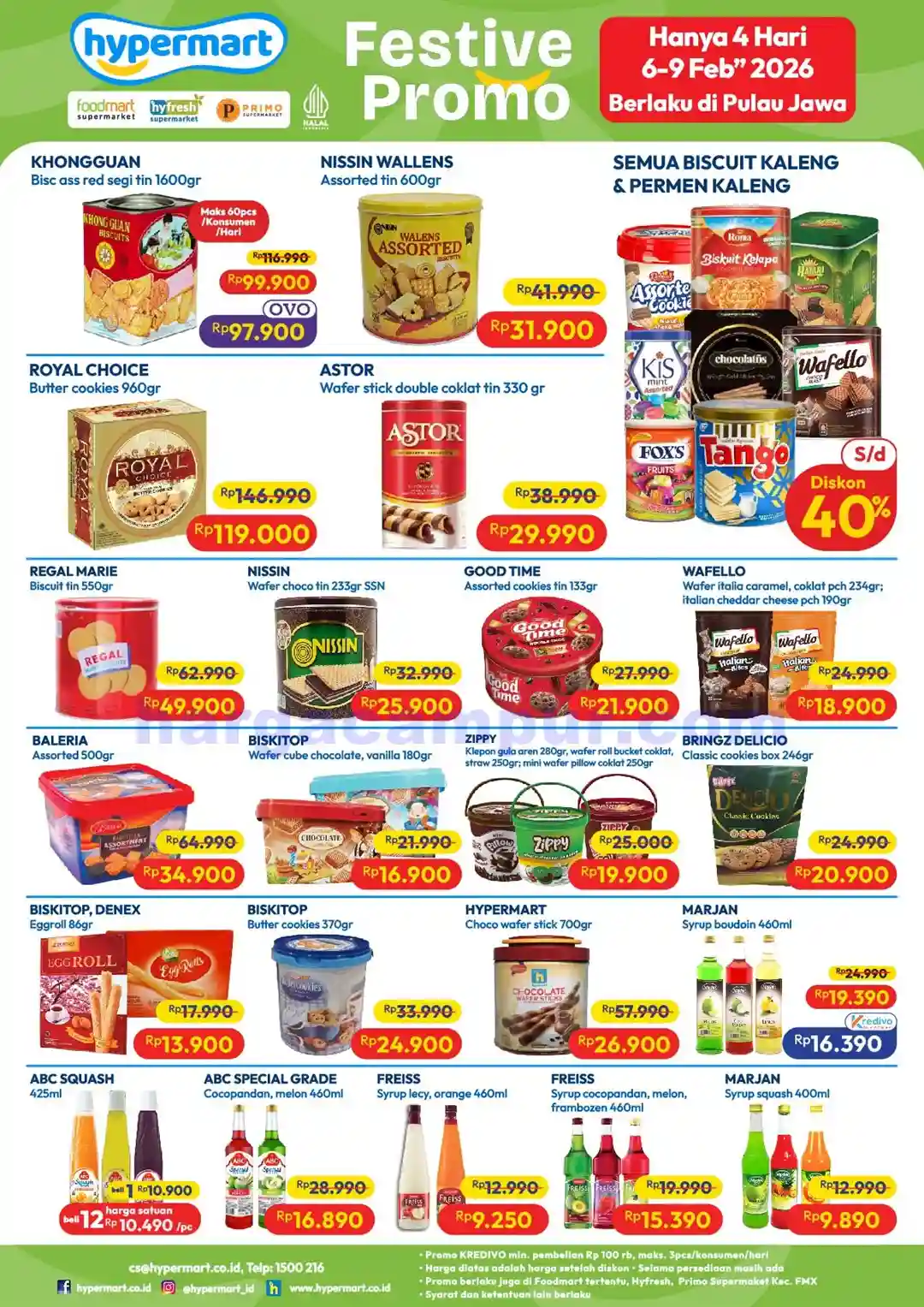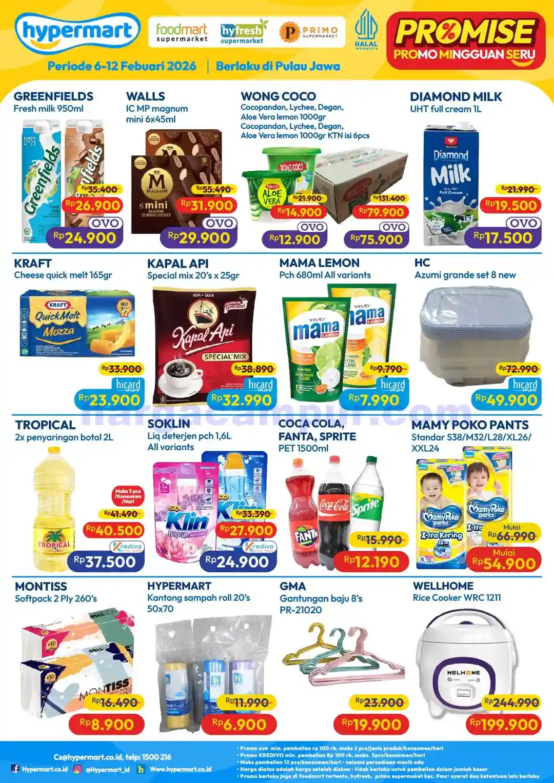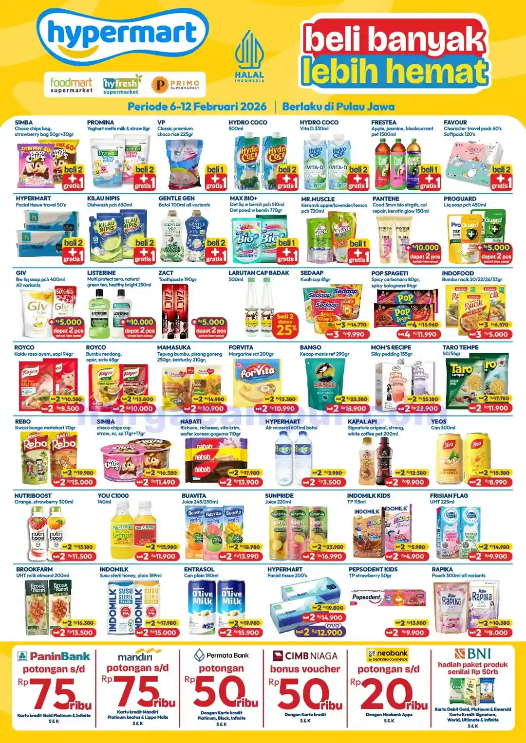 Syarat: Min. belanja Rp 100.000. Berlaku di Hypermart, Foodmart, Hyfresh, dan Primo wilayah Jawa.