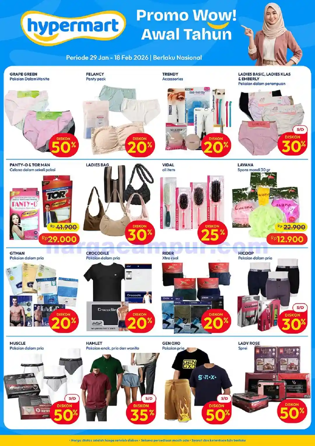 Diskon tambahan hingga 25–40% juga berlaku untuk produk kebersihan wanita, insektisida, dan kebutuhan rumah tangga tertentu.