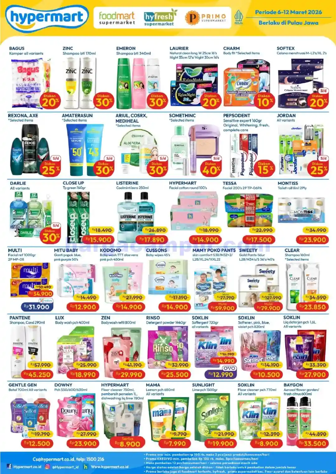 Hypermart juga menghadirkan promo besar untuk kategori produk perawatan tubuh, deterjen, serta kebutuhan rumah tangga dengan diskon hingga 40 persen.