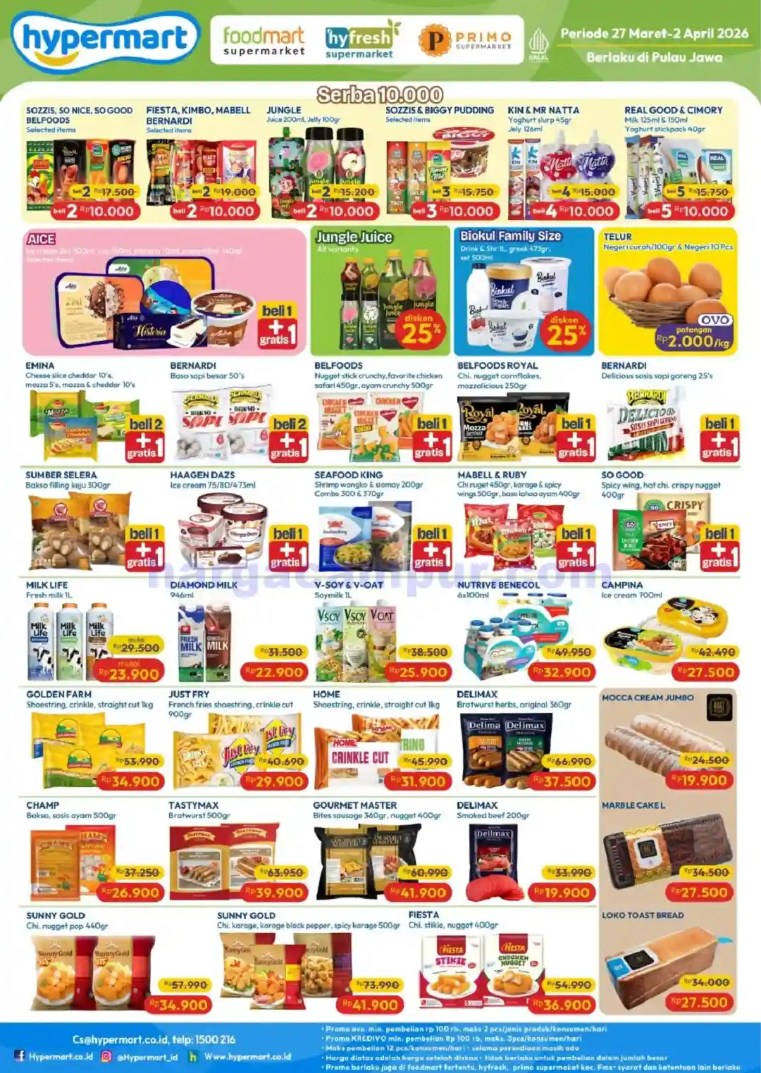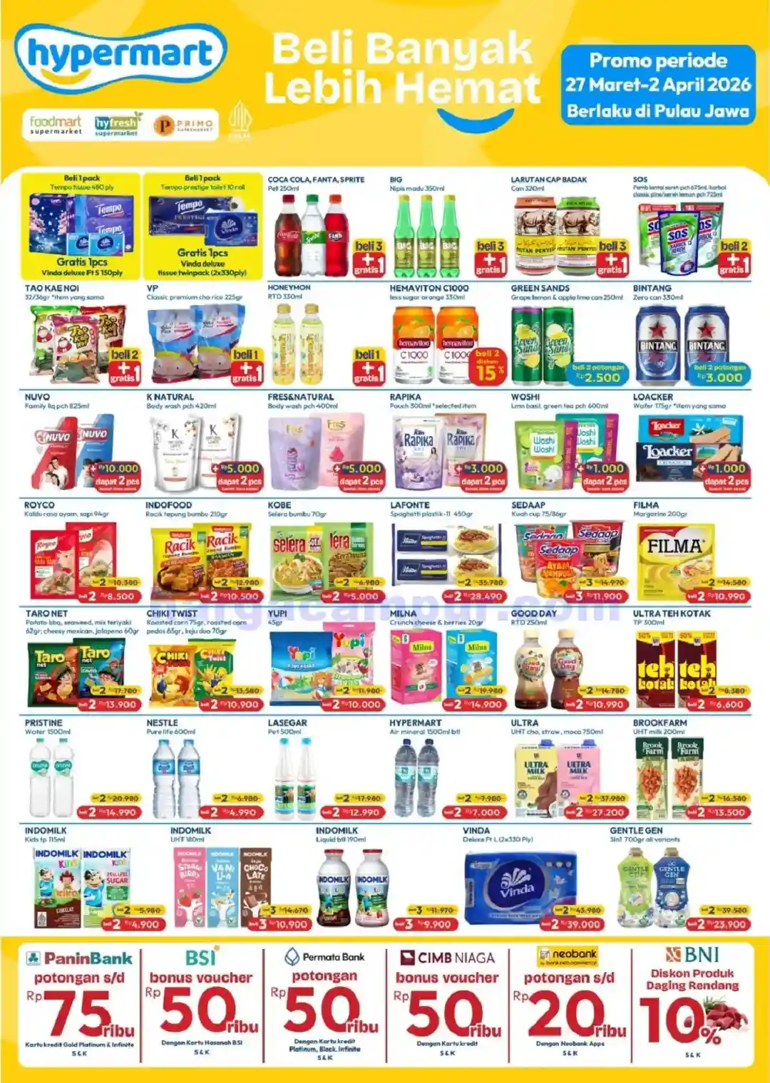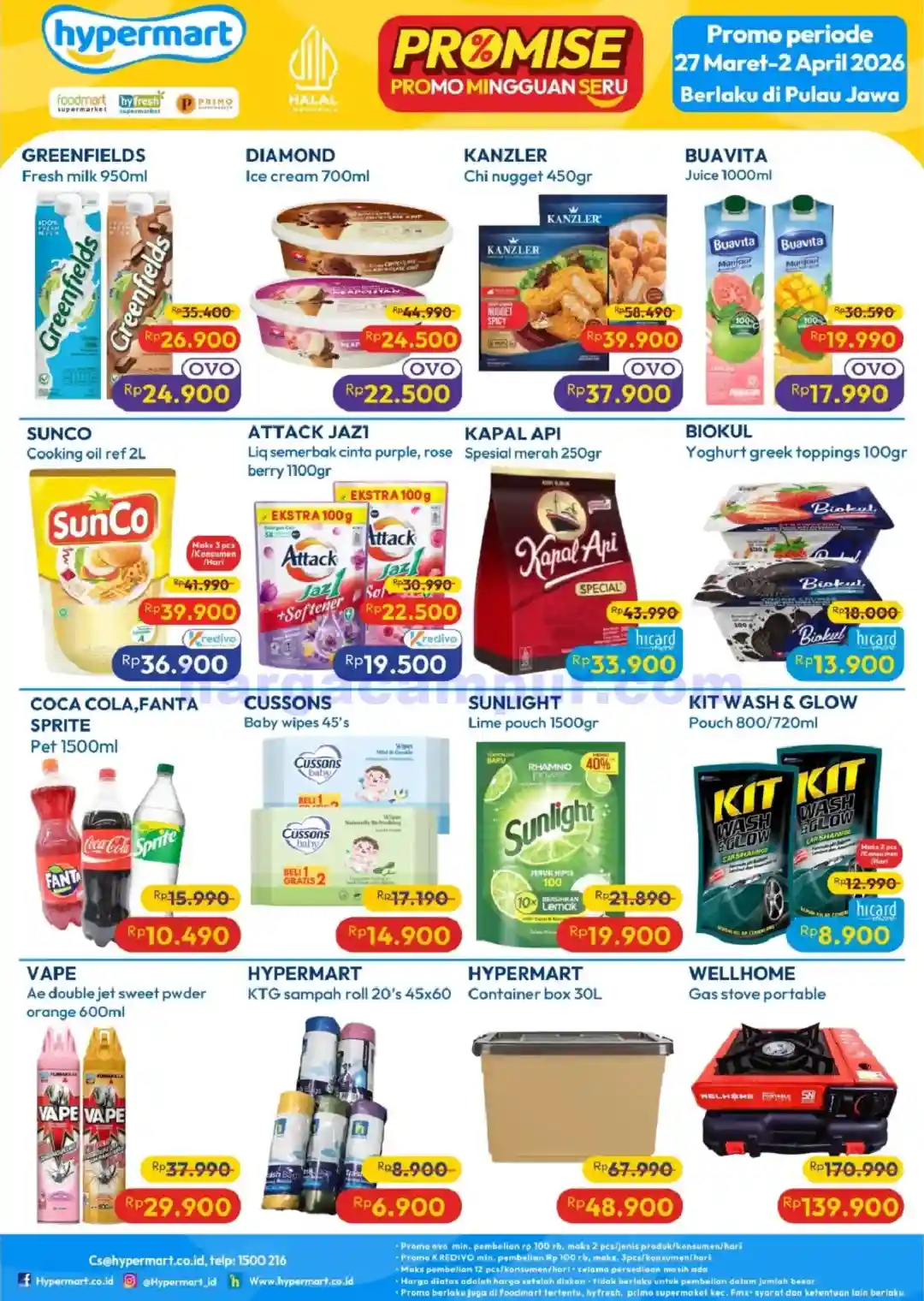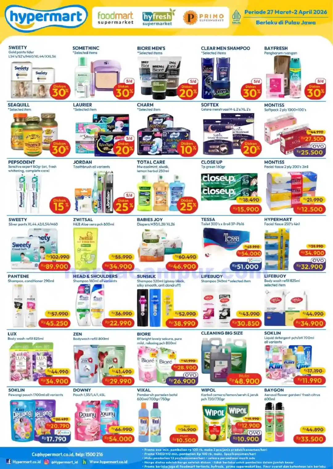 Catatan: Harga dan promo berlaku di seluruh Hypermart selama periode 27 – 29 Maret 2026, dengan beberapa produk hanya tersedia di area tertentu. Stok terbatas, segera kunjungi Hypermart terdekat untuk mendapatkan penawaran terbaik.