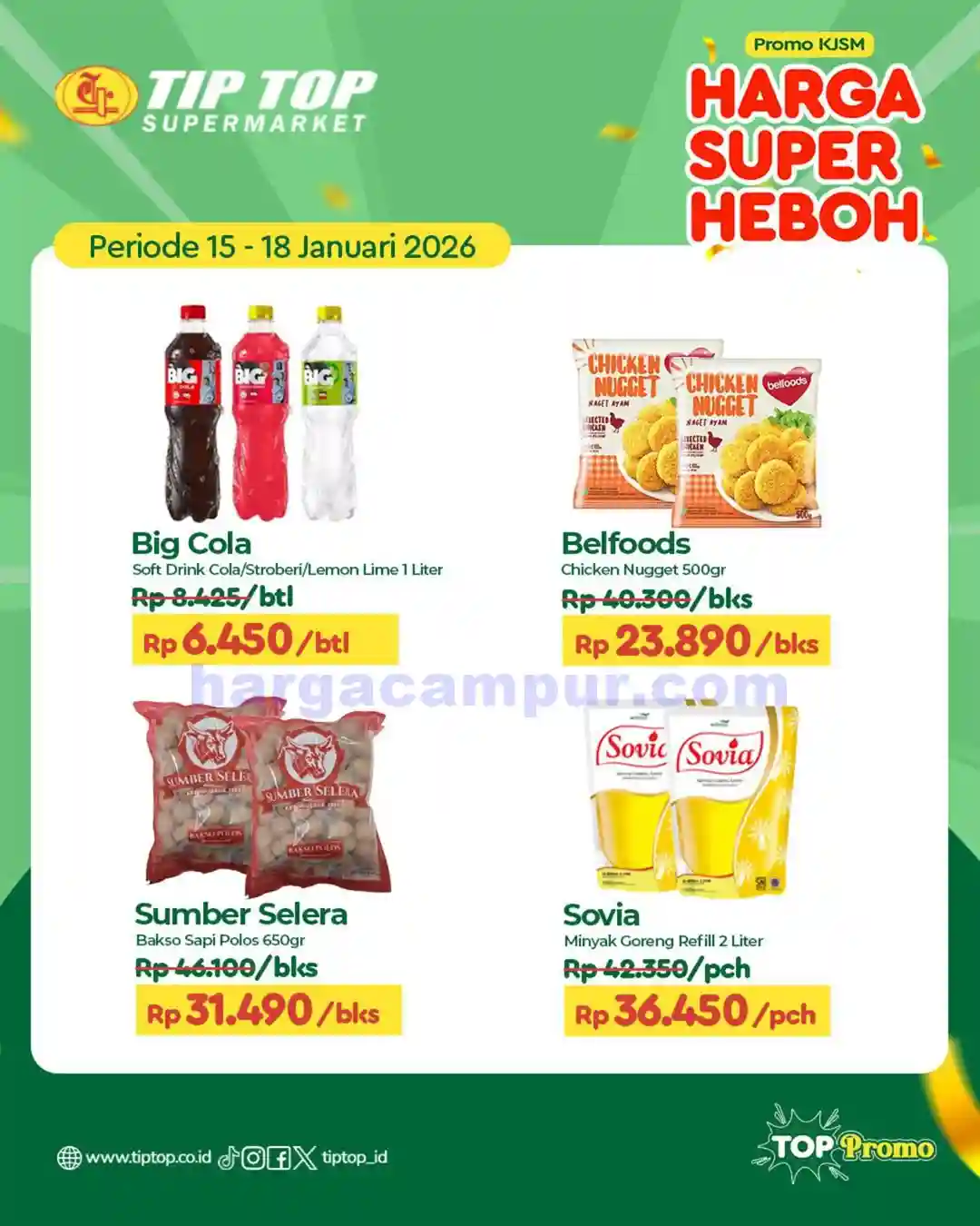 Berikut ini adalah katalog promo JSM TipTop Swalayan periode 16 – 18 Januari 2026 yang bisa kamu jadikan panduan sebelum belanja. Katalog ini berisi daftar lengkap produk-produk yang sedang diskon, mulai dari kebutuhan dapur, makanan ringan, perlengkapan mandi, hingga produk kebersihan rumah tangga.