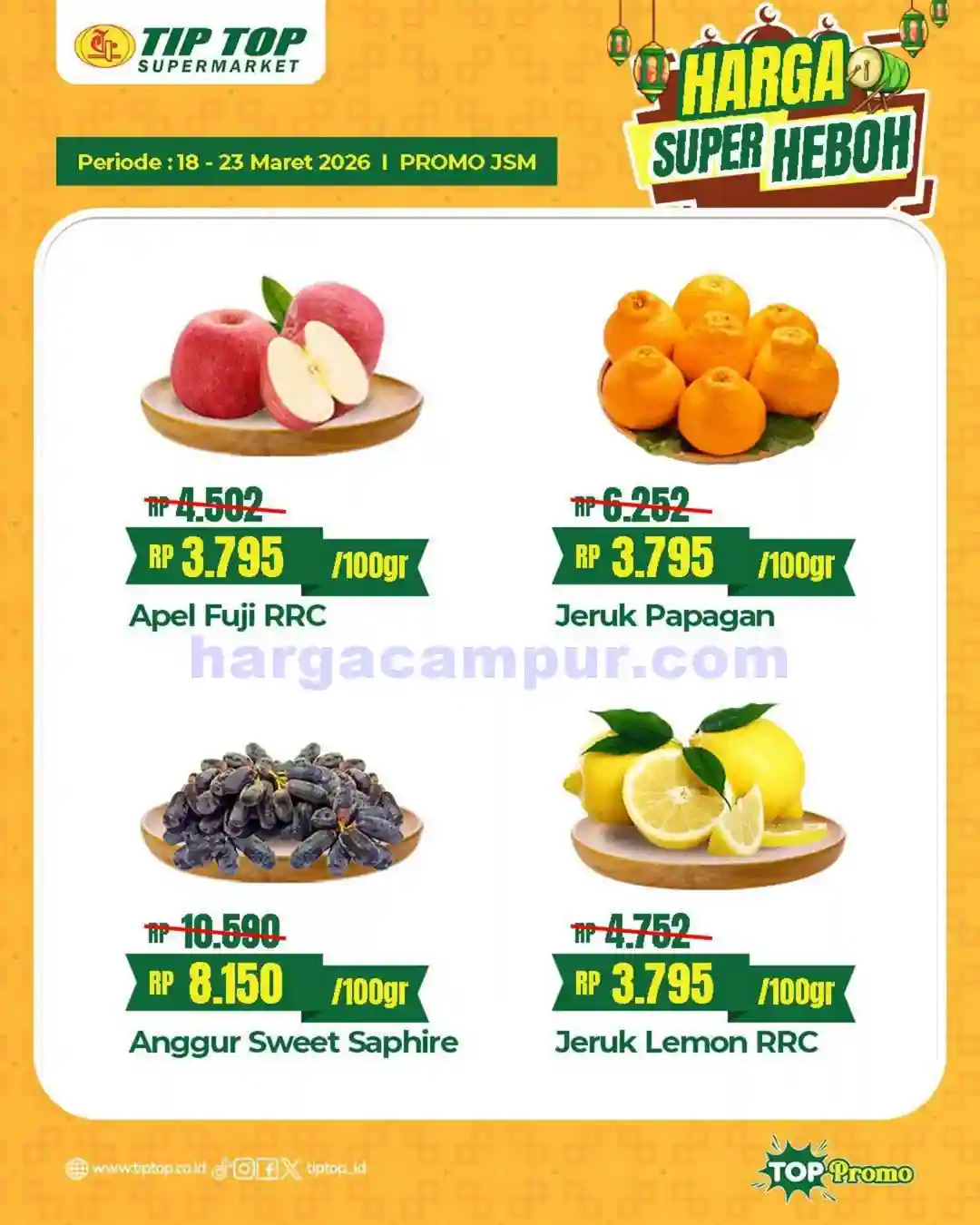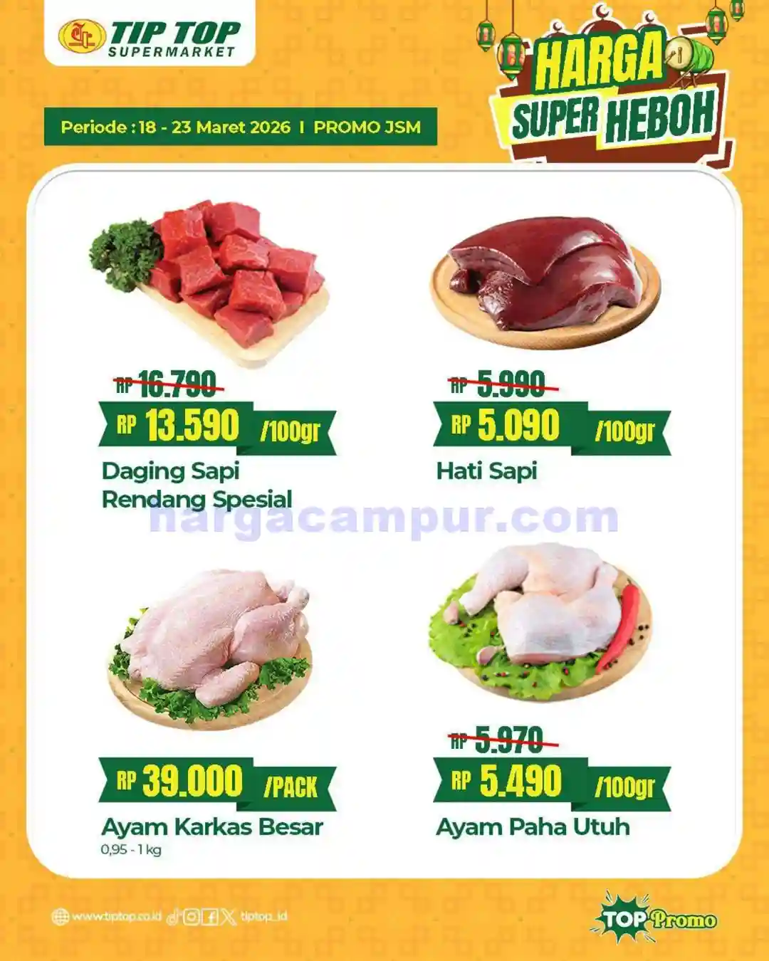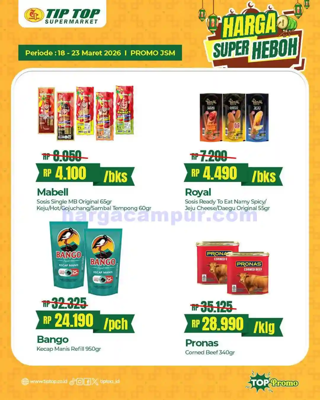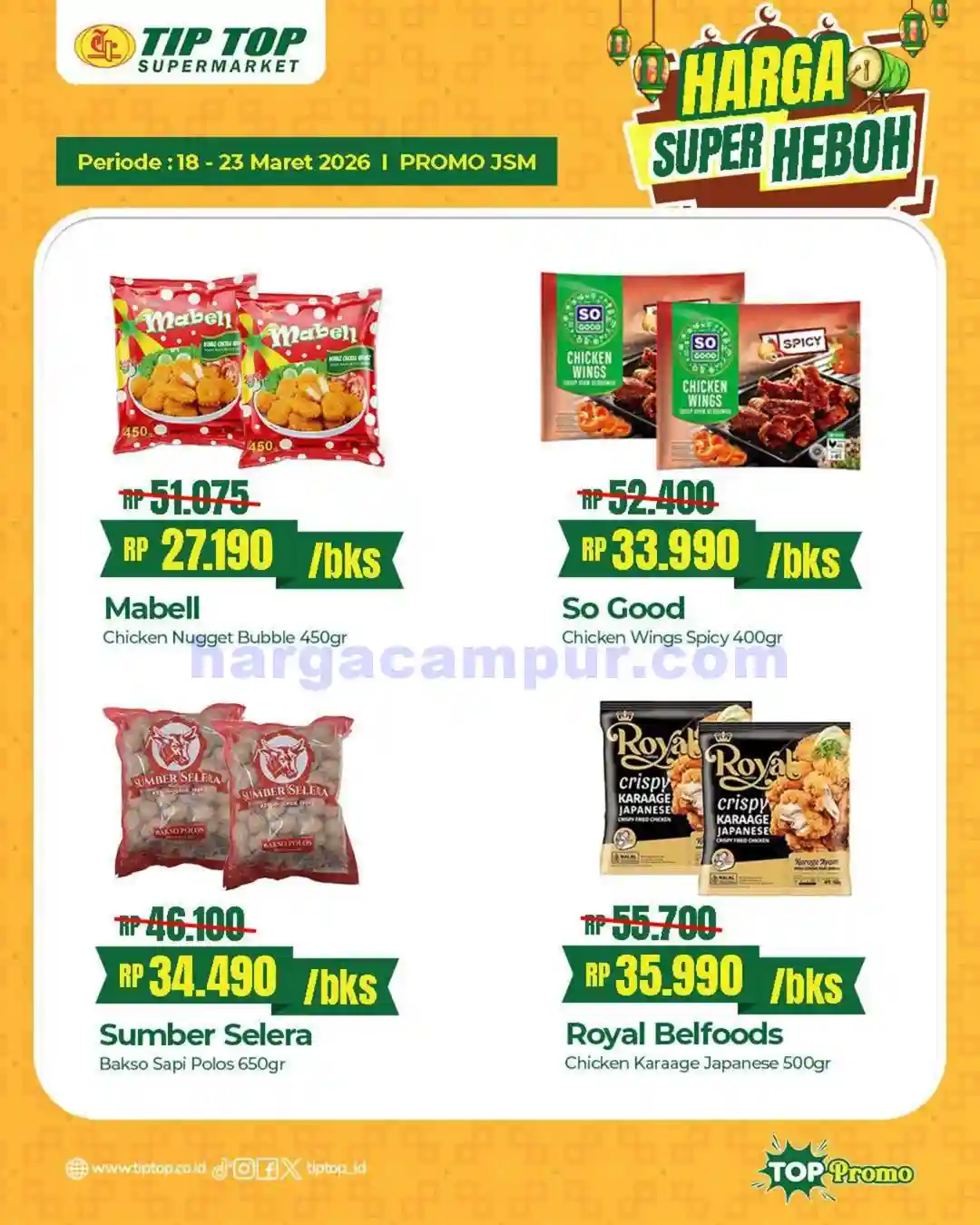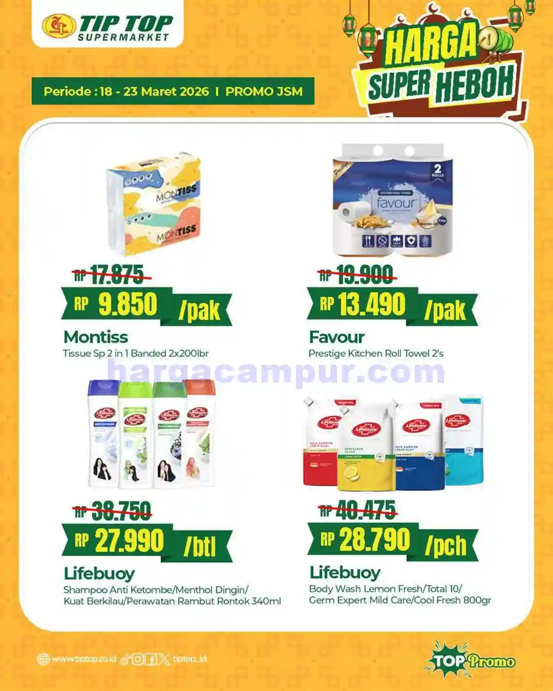 Berikut ini adalah katalog promo JSM TipTop Swalayan periode 20 – 22 Maret 2026 yang bisa kamu jadikan panduan sebelum belanja. Katalog ini berisi daftar lengkap produk-produk yang sedang diskon, mulai dari kebutuhan dapur, makanan ringan, perlengkapan mandi, hingga produk kebersihan rumah tangga.
