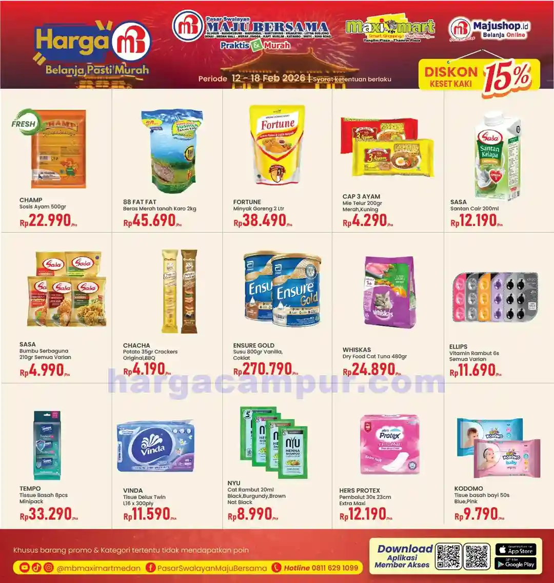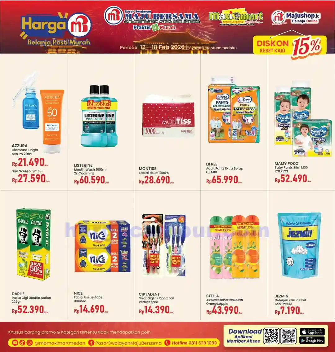 Silakan lihat gambar katalog promo resmi untuk minggu ini. Di dalamnya tercantum berbagai diskon dan paket hemat yang hanya berlaku selama periode 12 sampai 15 Februari 2026. Jika Anda membaca artikel ini di hari pertama promo, maka ini saat yang tepat untuk segera mengunjungi Maximart terdekat sebelum kehabisan stok.