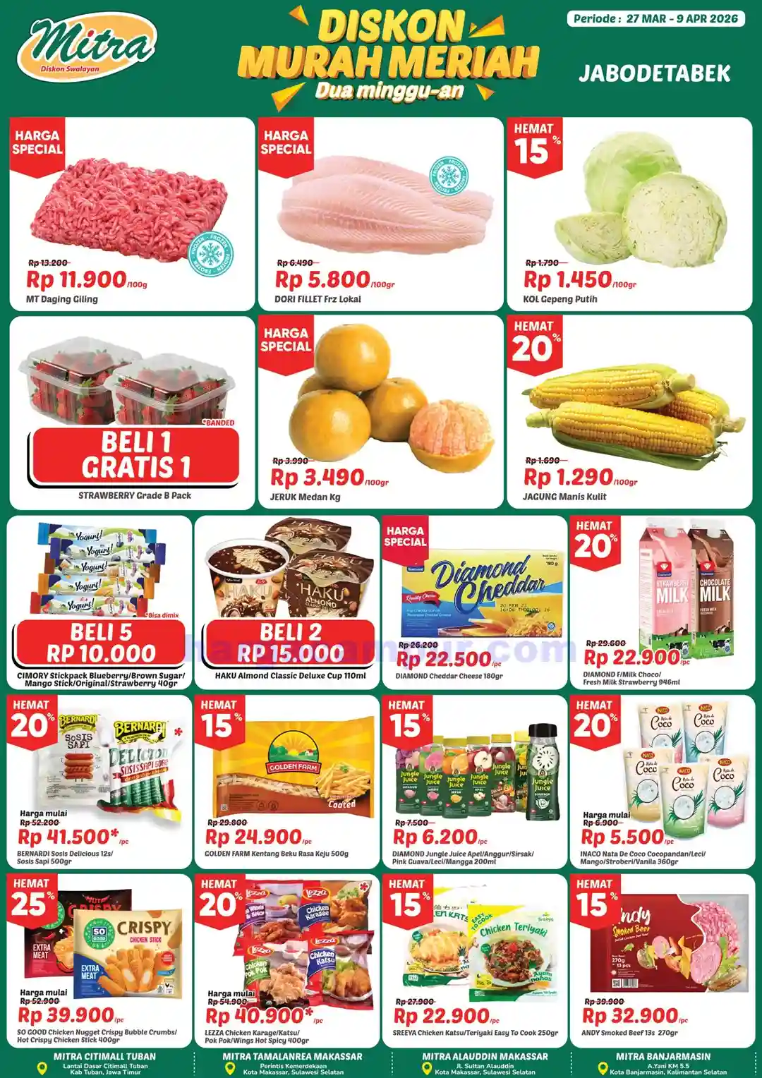 Bunda-bunda, jangan lewatkan kesempatan untuk berbelanja hemat di Mitra Diskon Swalayan. Dengan katalog promo yang menarik dan lokasi strategis di Citimall Cimanggis, supermarket ini siap menjadi pilihan belanja favorit Anda. Manfaatkan promo Grand Opening pada 4 Desember 2024, dan nantikan promo-promo rutin lainnya seperti JSM, promo weekday, dan katalog belanja mingguan.