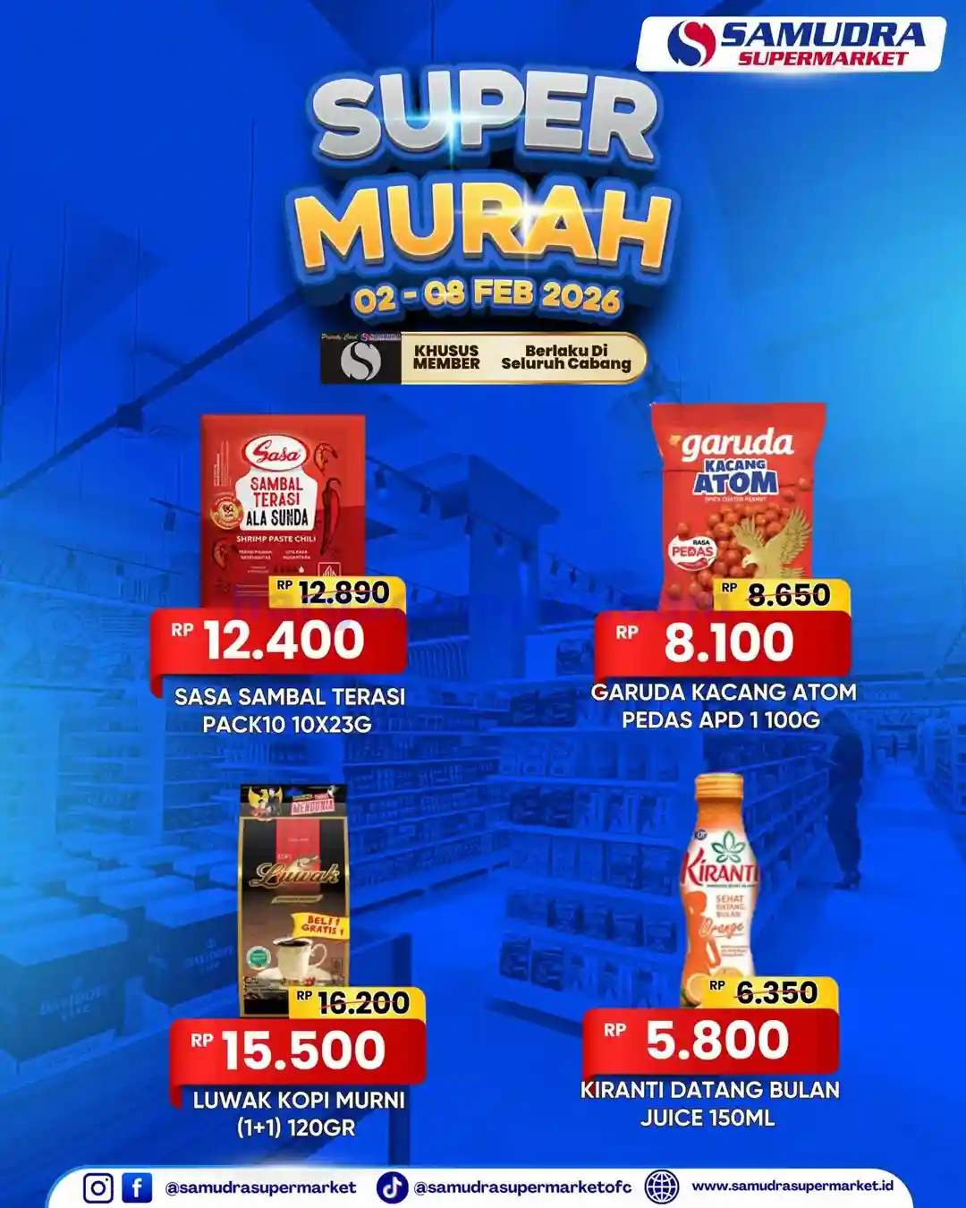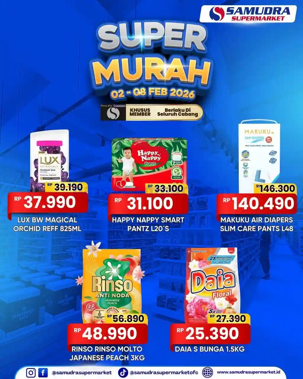 Promo Super Murah Samudra Supermarket periode 2–8 Februari 2026 ini bisa menjadi kesempatan ideal untuk mengisi ulang stok dapur dengan harga lebih efisien, jadi segera susun daftar belanja prioritas Anda dan kunjungi gerai Samudra Supermarket terdekat sebelum periode promo berakhir dan produk favorit keburu habis.