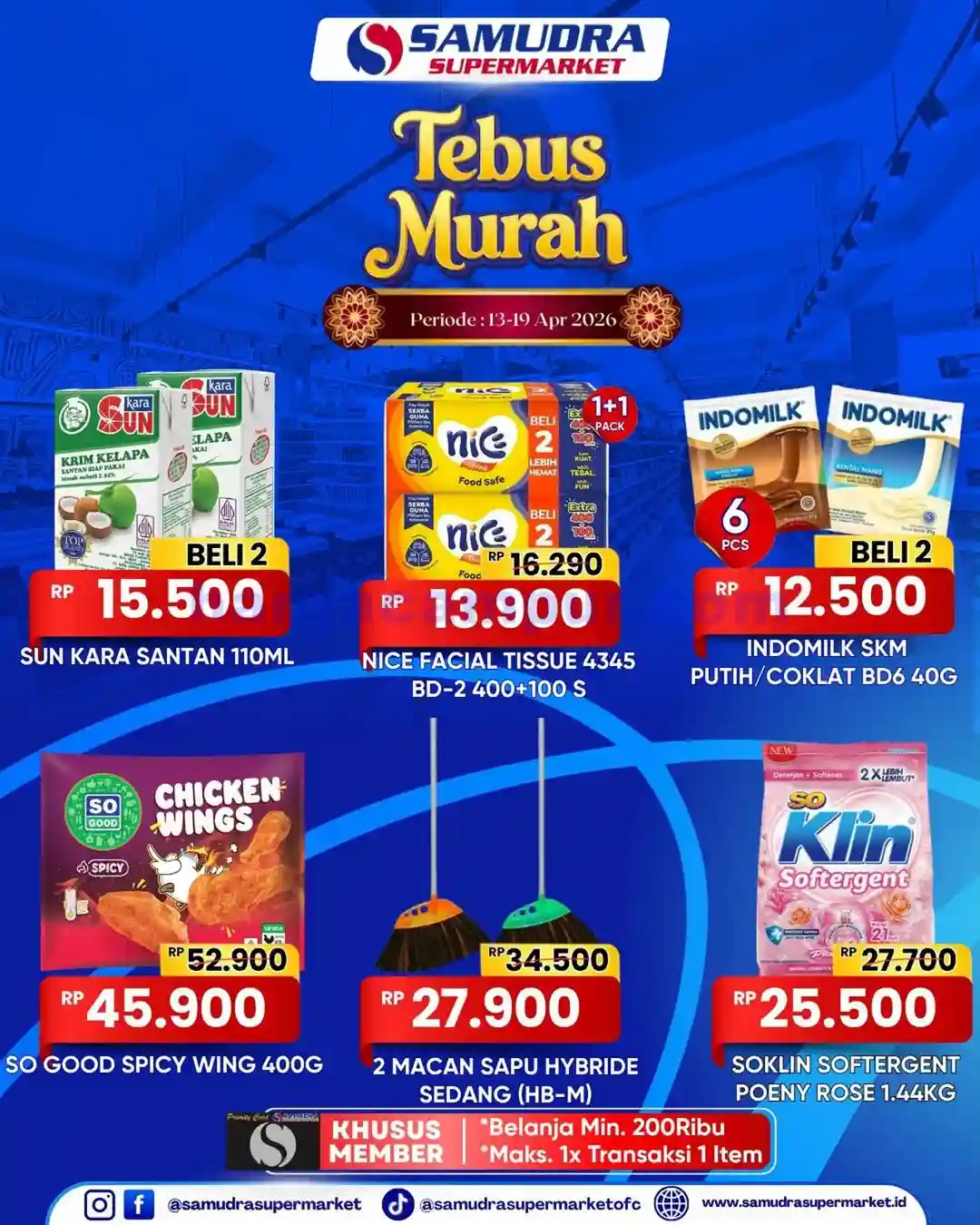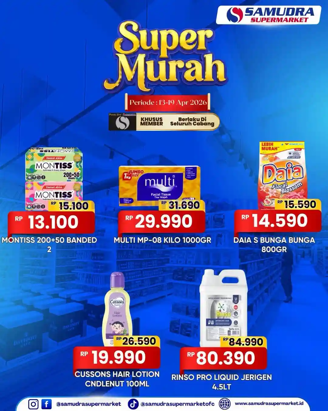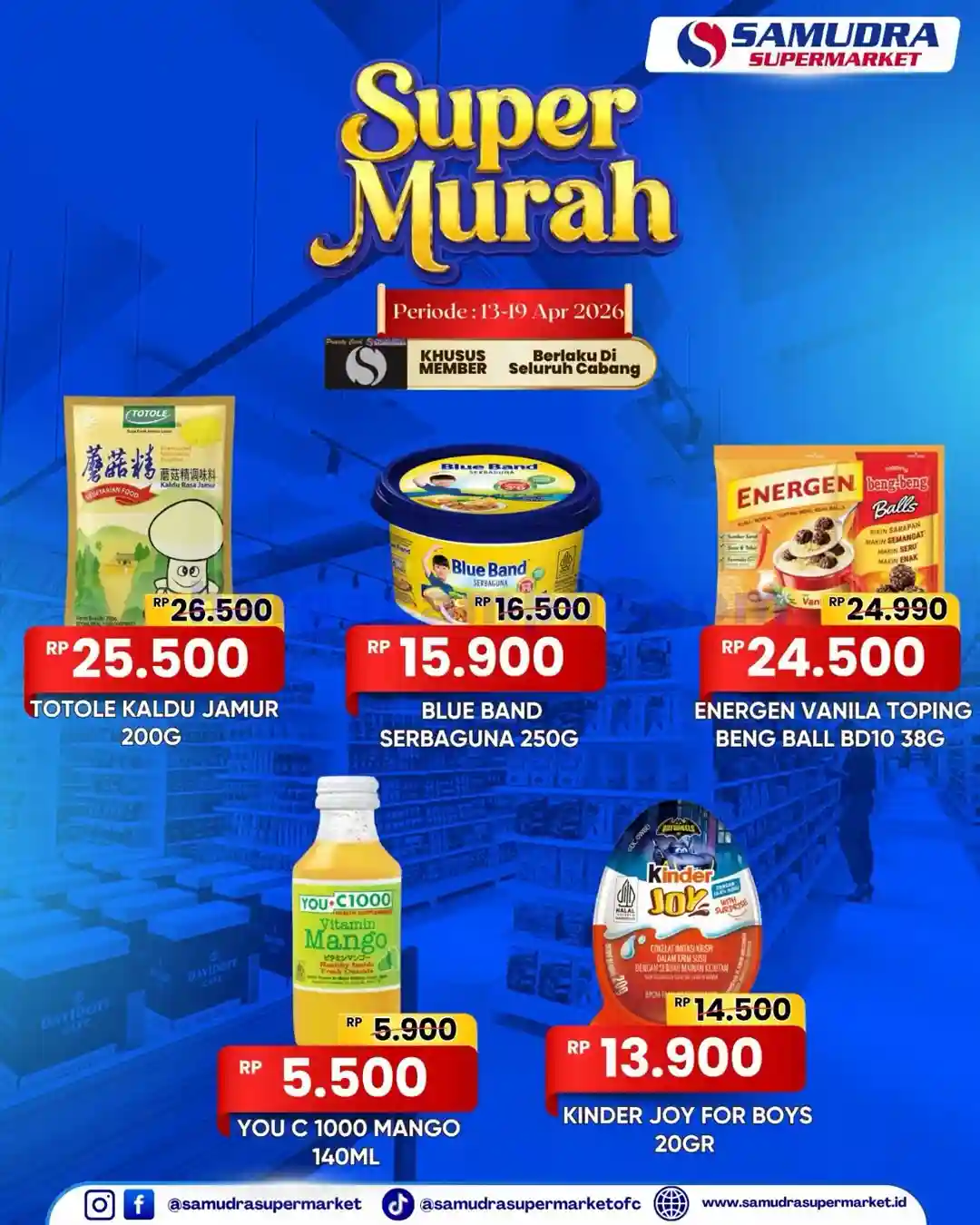 Promo Super Murah Samudra Supermarket periode 13 – 19 April 2026 ini bisa menjadi kesempatan ideal untuk mengisi ulang stok dapur dengan harga lebih efisien, jadi segera susun daftar belanja prioritas Anda dan kunjungi gerai Samudra Supermarket terdekat sebelum periode promo berakhir dan produk favorit keburu habis.