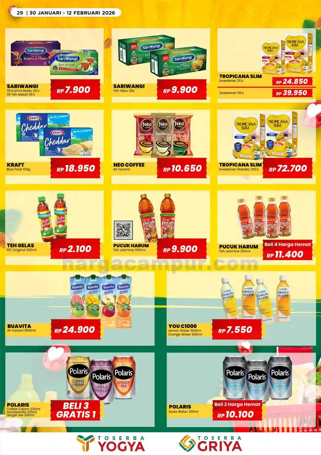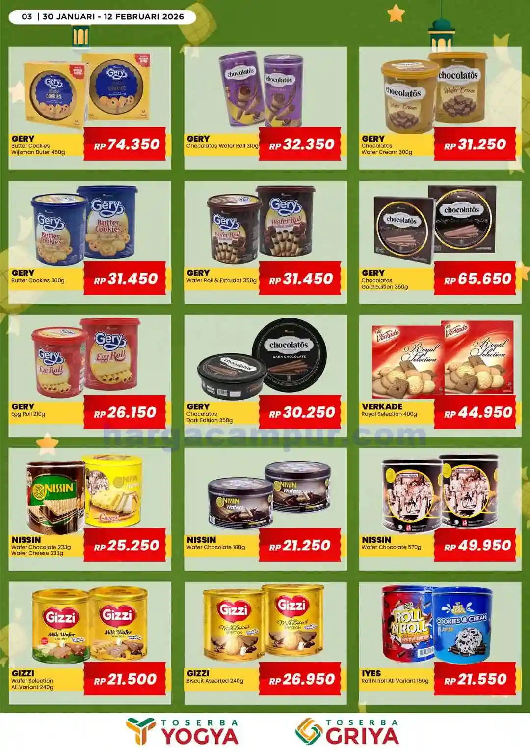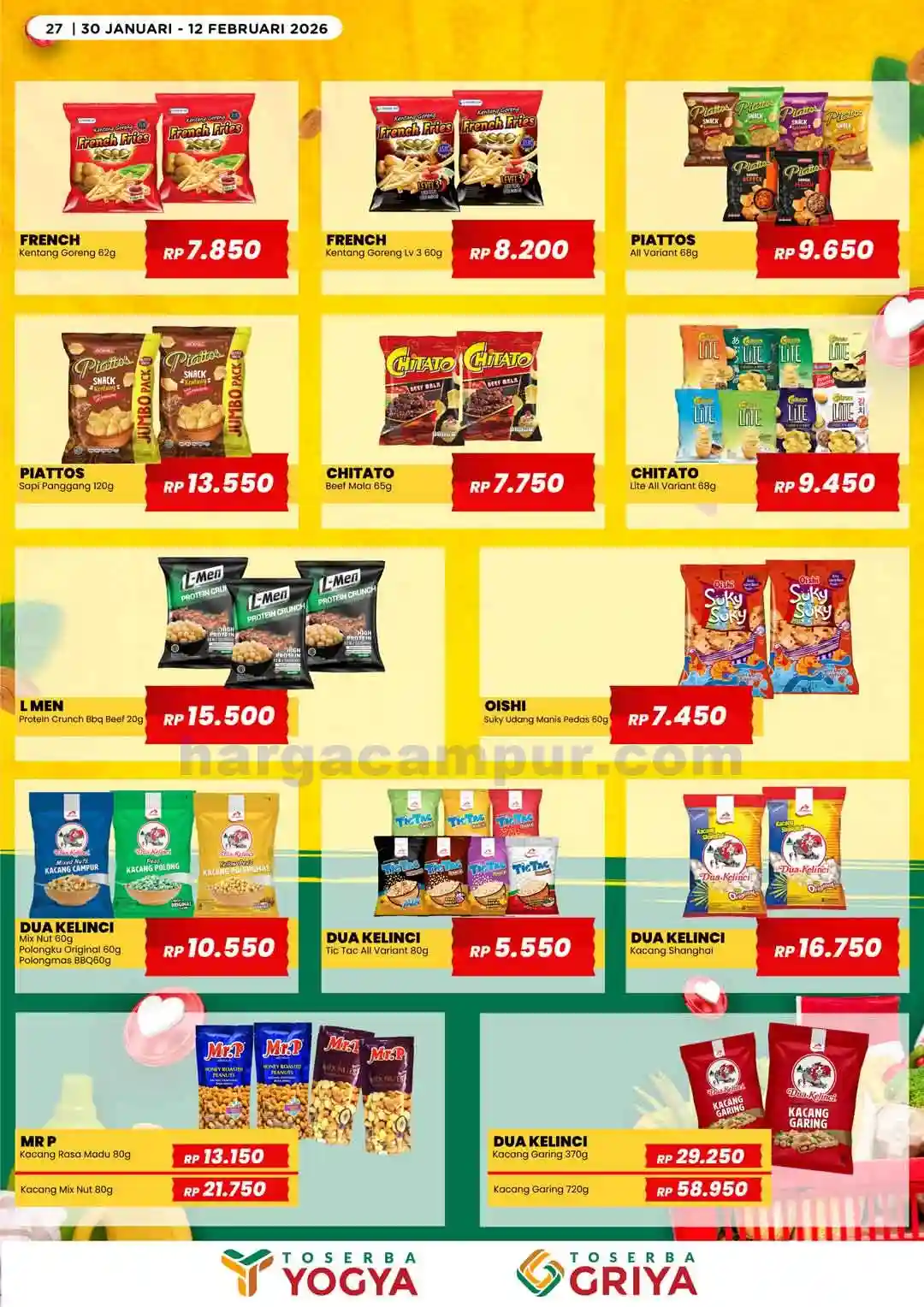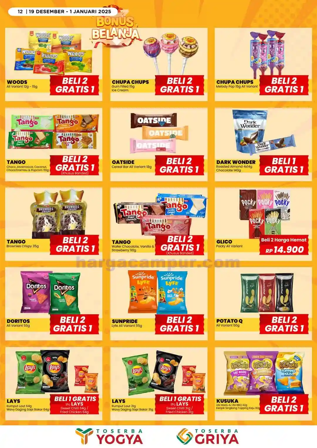 Produk yang di promosikan pada Katalog Toserba Yogya kali ini tidak jauh – jauh dengan kebutuhan sehari – hari seperti makanan ringan, snack, minuman ataupun kebutuhan pokok dan juga kebutuhan rumah tangga yang di bandrol dengan harga yang cukup murah demi kepuasan para pelanggan setianya.
