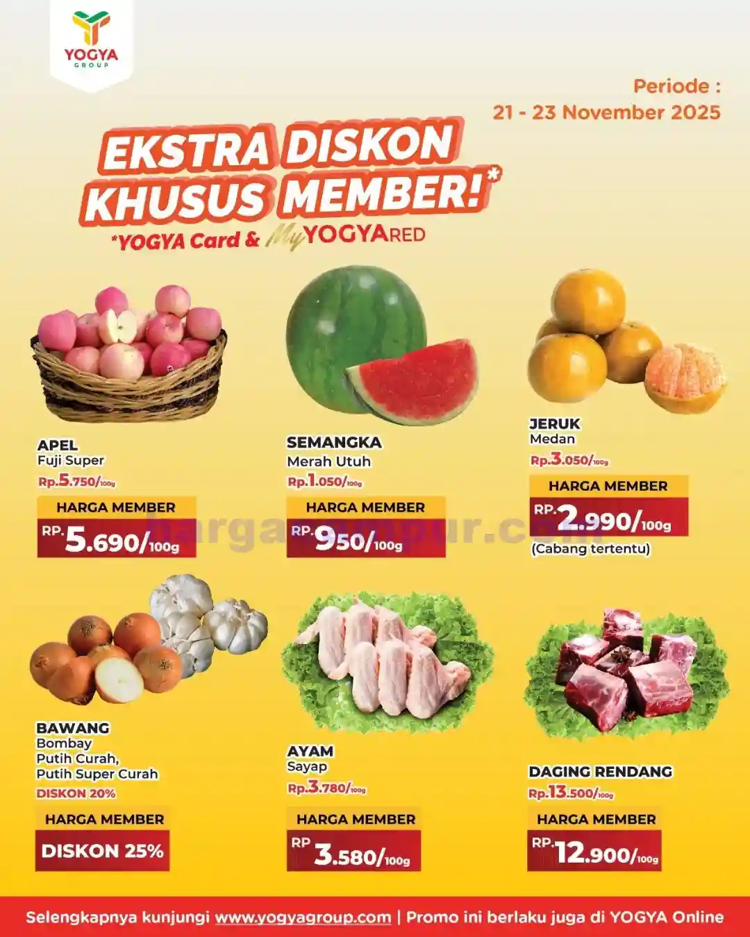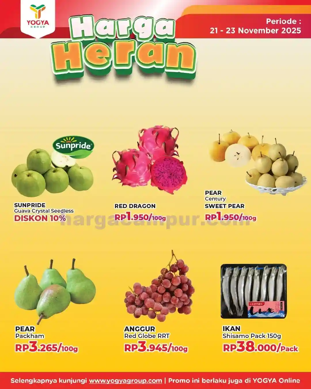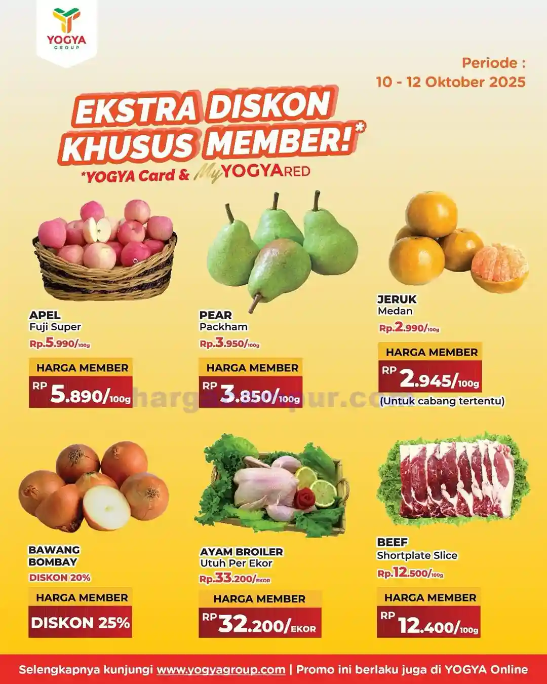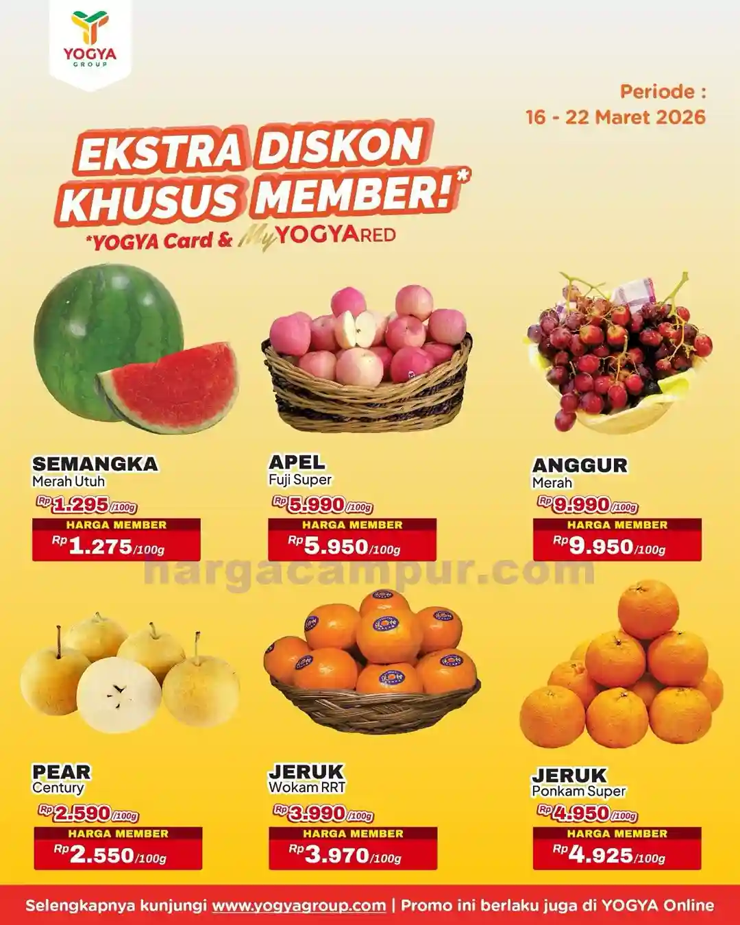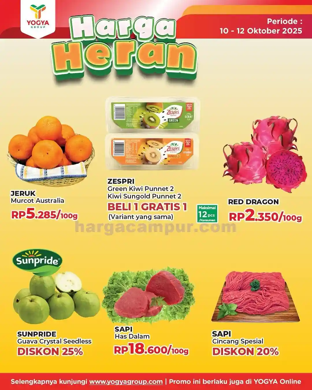 - Produk segar seperti buah impor (apel, jeruk, pisang cavendish) dan sayuran pilihan (bayam, wortel, brokoli) yang tetap terjaga kualitasnya meski dalam promo besar.