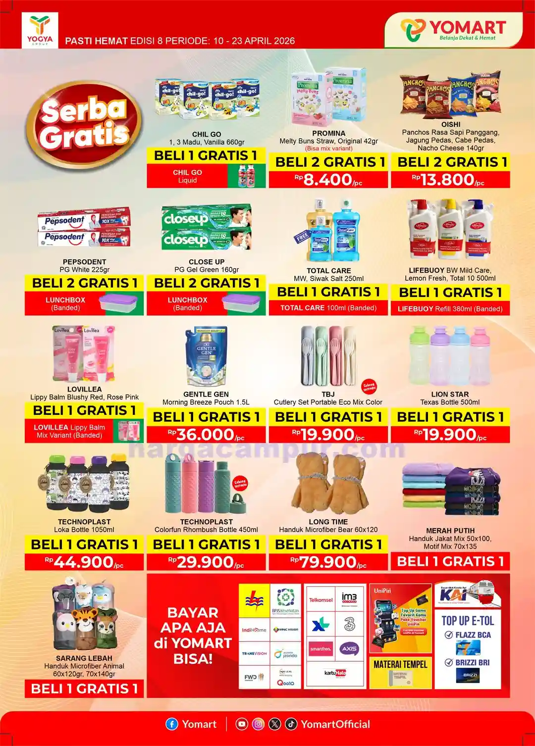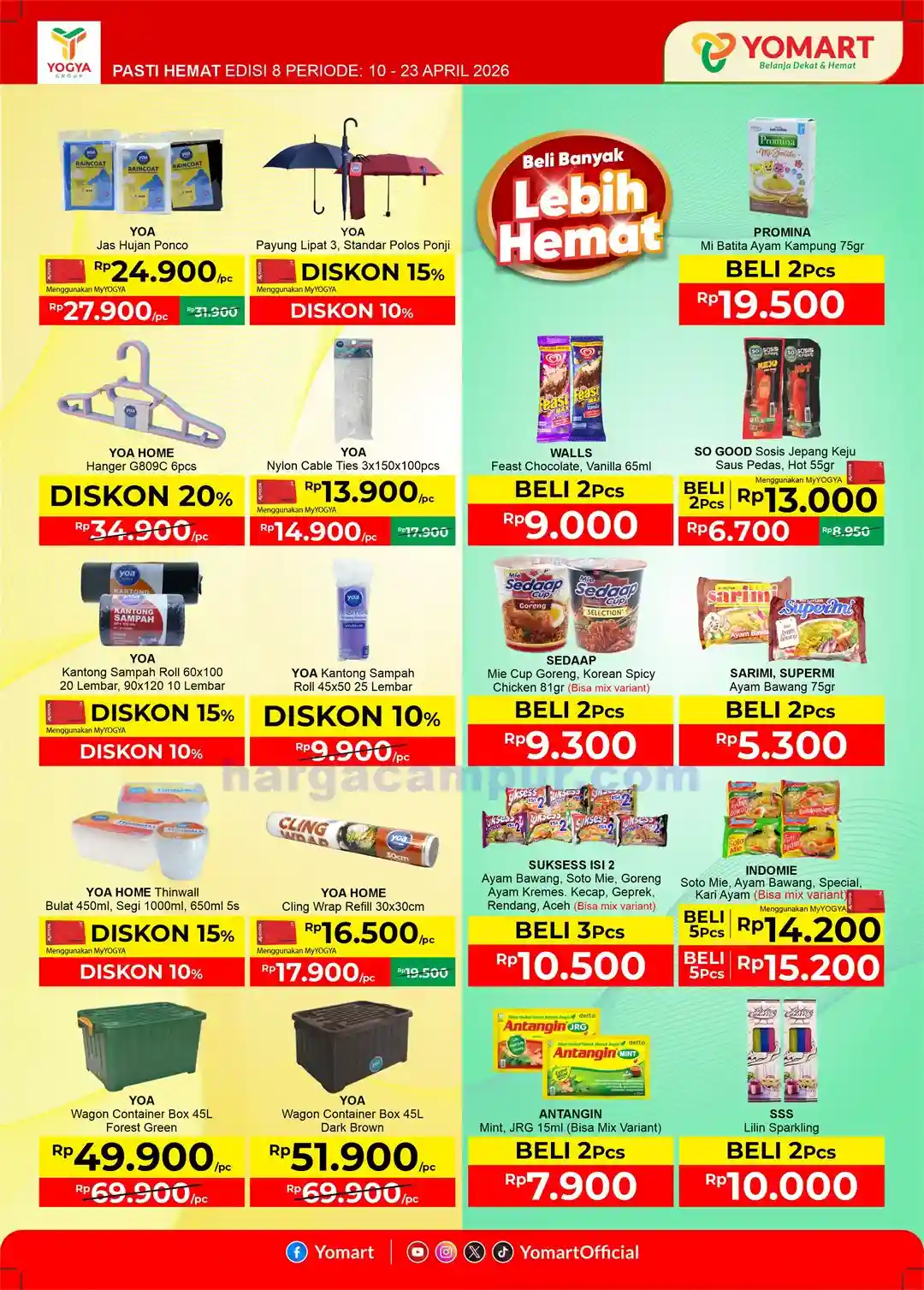 Pada Katalog Yomart Promo Terbaru kali ini banyak sekali produk – produk yang di promosikan. Tentunya produk – produk yang di promosikan di Yomart ini sangat berdekatan dengan kebutuhan pokok atau kebutuhan sehari – hari masyarakat. Beberapa produk yang di promosikan di Katalog Yomart terbaru ini seperi Makanan ringan, Minuman, Kebutuhan Dapur, Peratalan Mandi. Ada juga kebutuahn rumah tangga yang di bandrol dengan harga yang lebih murah dari biasanya.