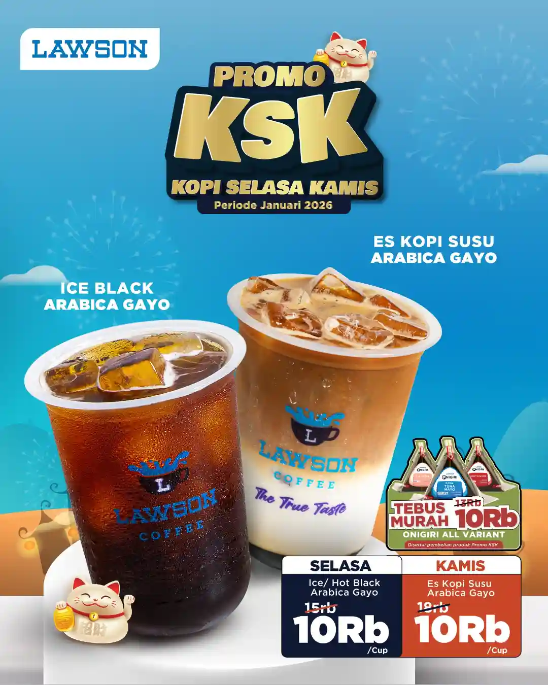 Dengan skema promo mingguan yang konsisten, Lawson menargetkan program KSK Kopi ini menjadi pilihan praktis bagi pelanggan yang menjadikan hari Selasa dan Kamis sebagai agenda rutin untuk menikmati kopi dengan harga hemat. Promo ini berlaku selama periode Januari 2026 sebelum harga kembali normal.