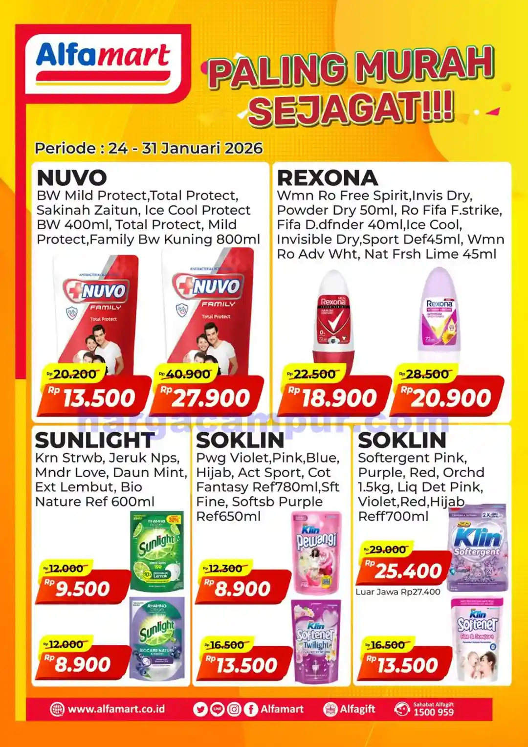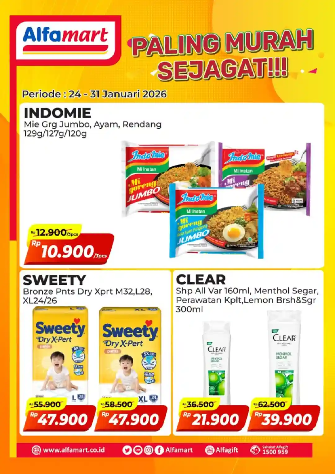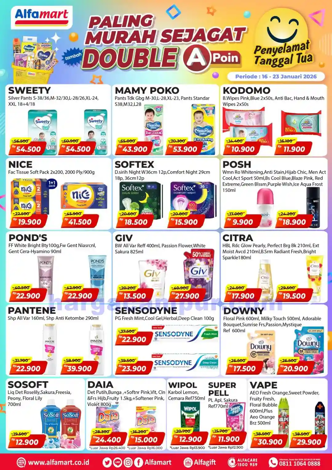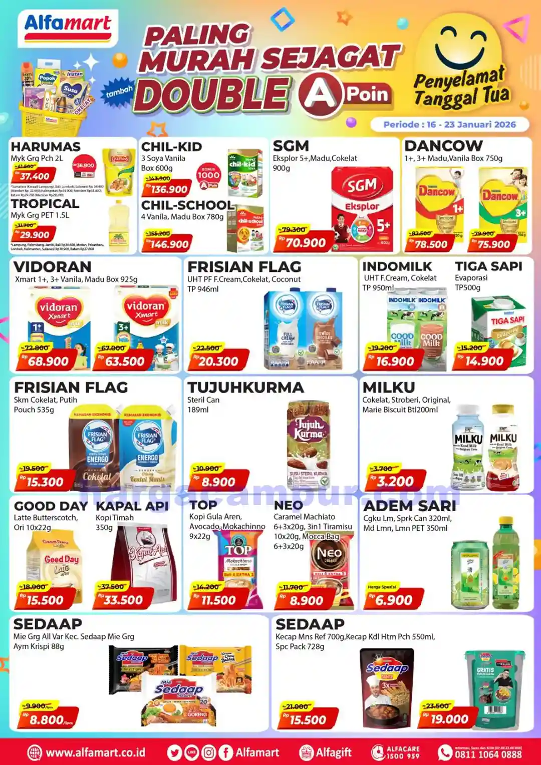 Tersedia selama satu minggu, mulai dari tanggal 16 hingga 23 Januari 2026, promo ini mencakup berbagai merek ternama dan produk favorit pelanggan yang bisa Anda temukan di semua gerai Alfamart di seluruh Indonesia.