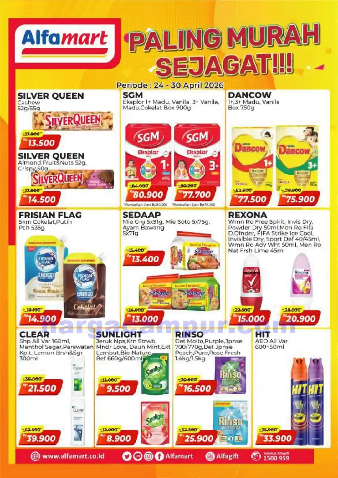 Tersedia selama satu minggu, mulai dari tanggal 1 hingga 7 Mei 2026, promo ini mencakup berbagai merek ternama dan produk favorit pelanggan yang bisa Anda temukan di semua gerai Alfamart di seluruh Indonesia.