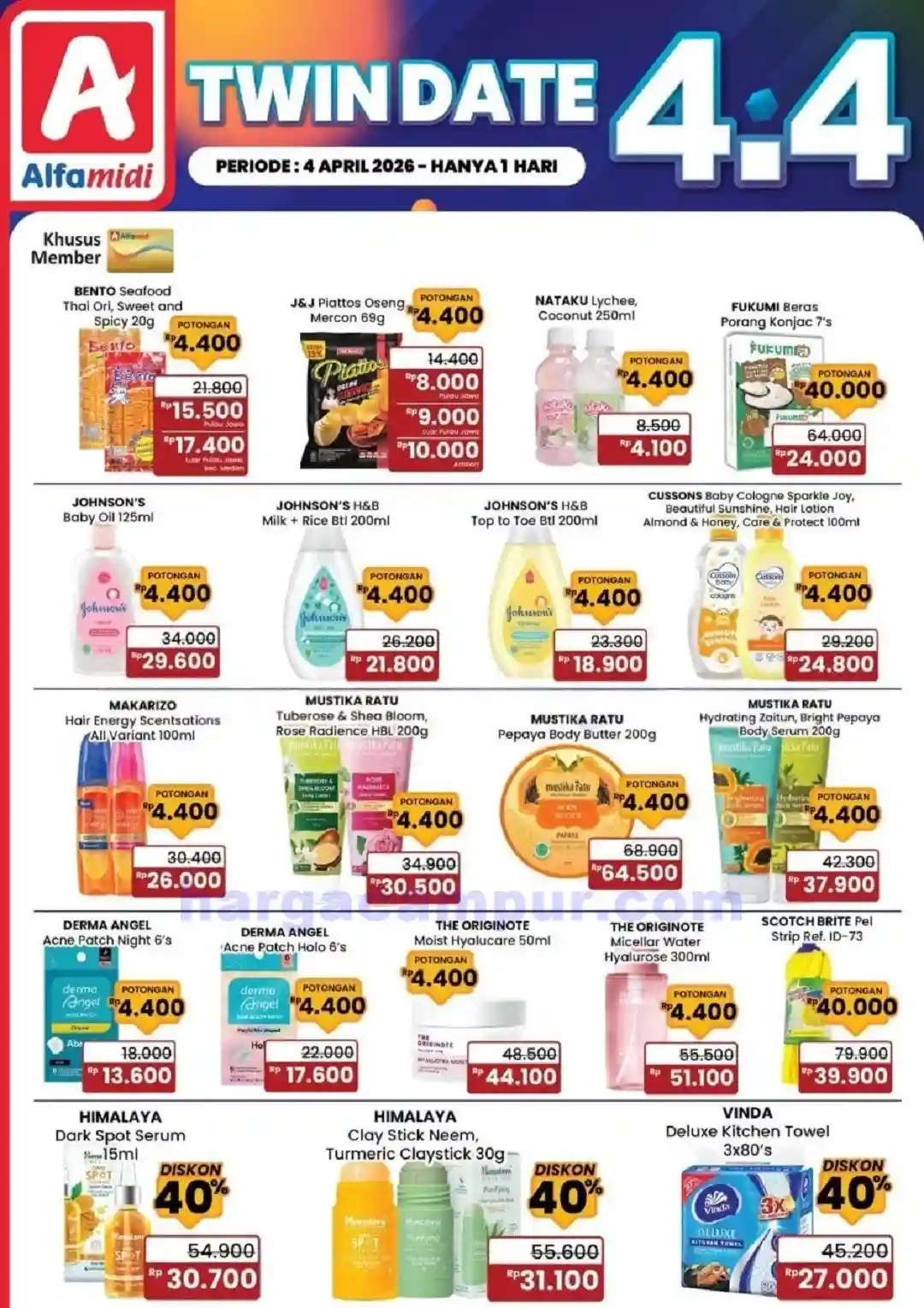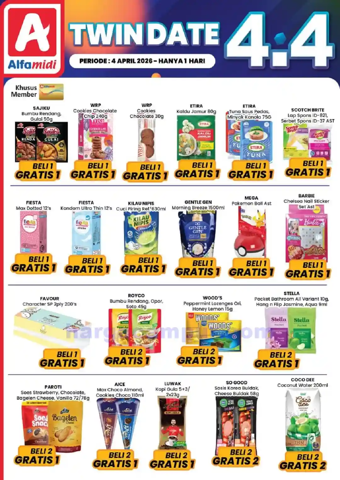 Promo Alfamidi Twin Date 4.4 Terbaru 4 April 2026 Hanya 1 Hari menjadi momentum tepat untuk belanja kebutuhan rumah tangga dengan potongan maksimal dan skema dobel produk, jadi pastikan Anda sudah menjadi member, siapkan daftar prioritas, dan kunjungi gerai Alfamidi pada 4 April 2026 sebelum stok promo habis.