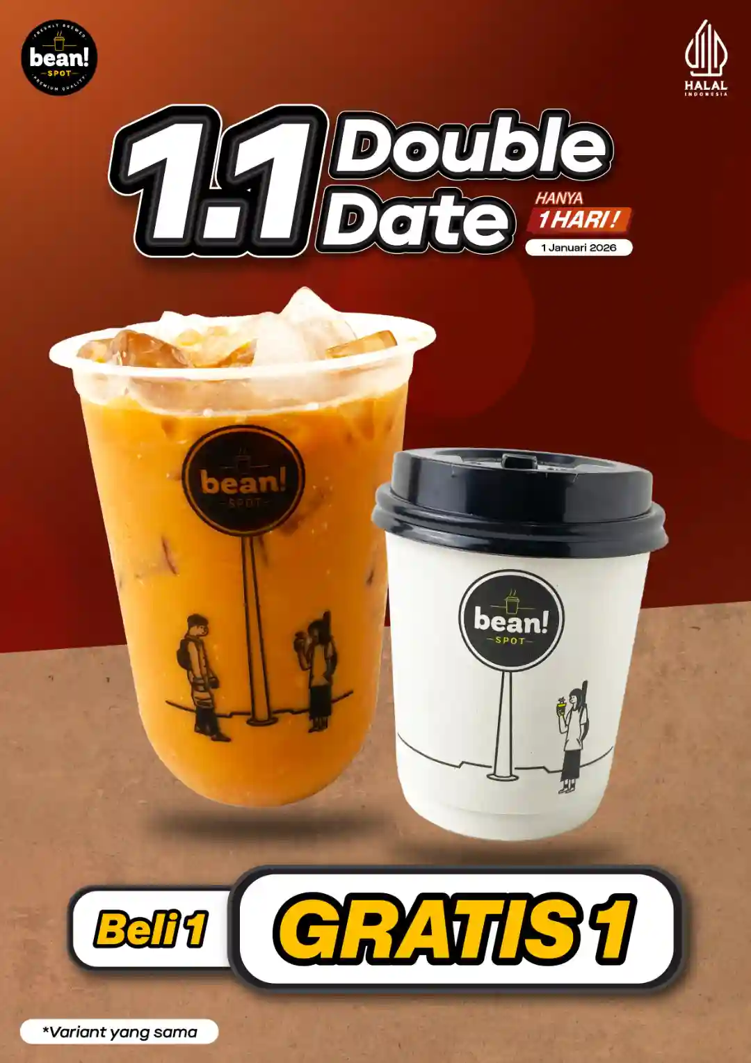 Awal tahun selalu identik dengan momen spesial, terutama tanggal kembar yang sering dimanfaatkan banyak brand untuk menghadirkan promo menarik. Salah satunya datang dari Beanspot, jaringan minuman kopi dan non-kopi yang dikenal dekat dengan keseharian masyarakat. Memanfaatkan momentum Double Date 1.1, Beanspot menghadirkan promo yang sederhana namun sangat relevan: Beli 1 Gratis 1 Minuman, khusus satu hari saja.
