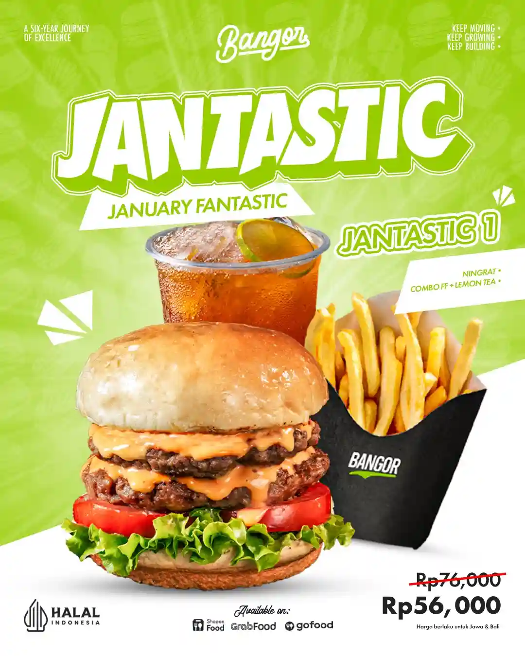 Jika kamu sedang mencari pilihan makan praktis yang tetap terasa spesial, Promo Burger Bangor Spesial Paket JANTASTIC Mulai 56 Ribu bisa jadi jawaban yang pas. Selama periode 8–31 Januari 2025, manfaatkan kesempatan ini lewat GrabFood, GoFood, atau ShopeeFood, dan biarkan JANTASTIC menemani hari-harimu dengan rasa yang konsisten dan pilihan yang fleksibel.
