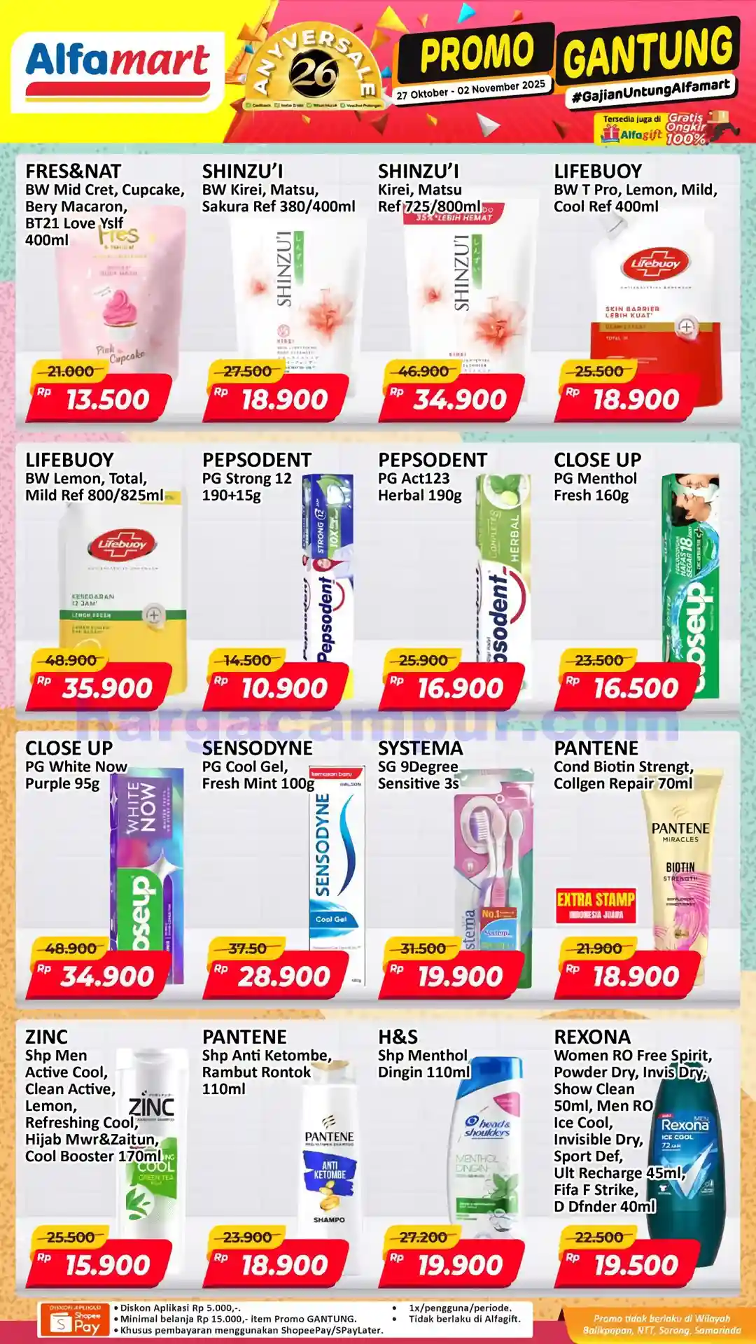 Promo Gantung Alfamart periode 27 Oktober – 2 November 2025 adalah momen emas untuk belanja kebutuhan rumah tangga dengan harga hemat tapi kualitas tetap terjaga. Produk-produk penting dari bahan pokok hingga kebutuhan bayi tersedia dalam diskon yang benar-benar membantu mempertahankan anggaran keluarga.