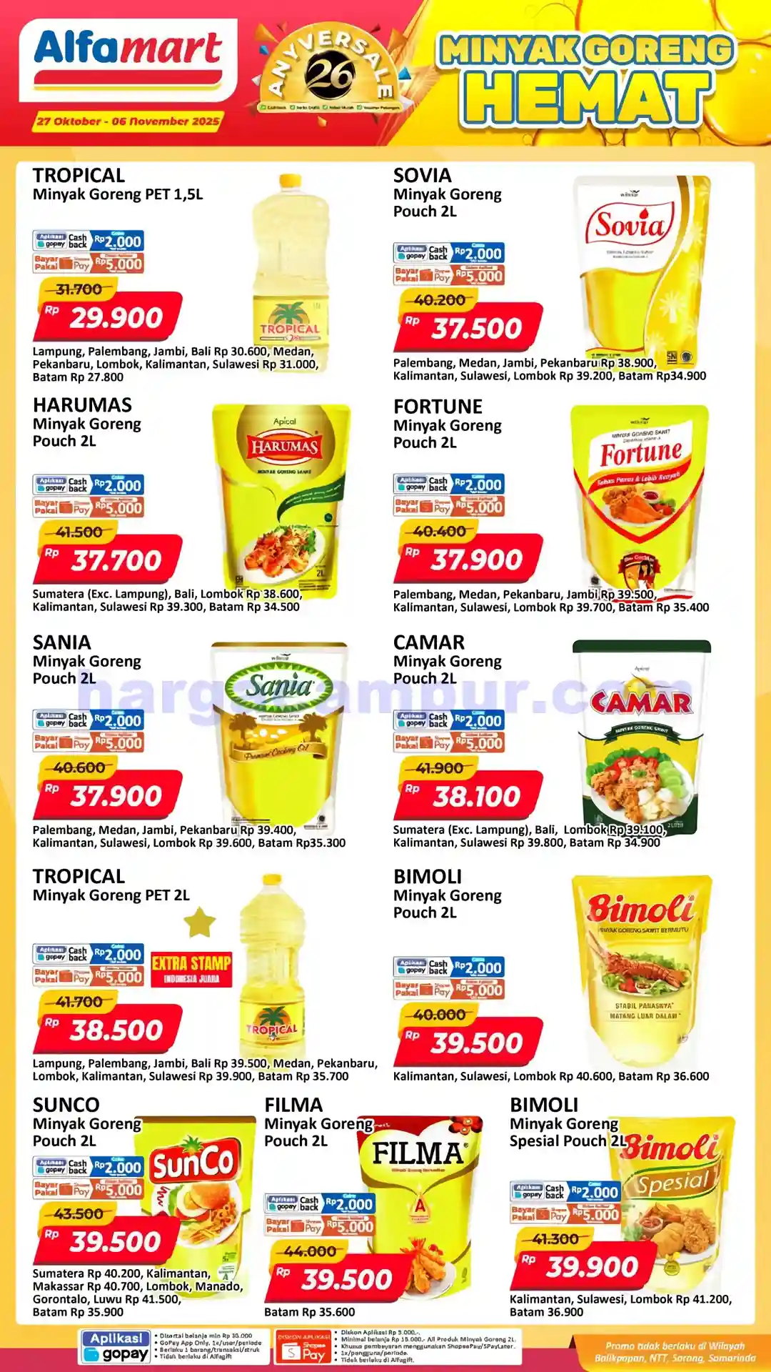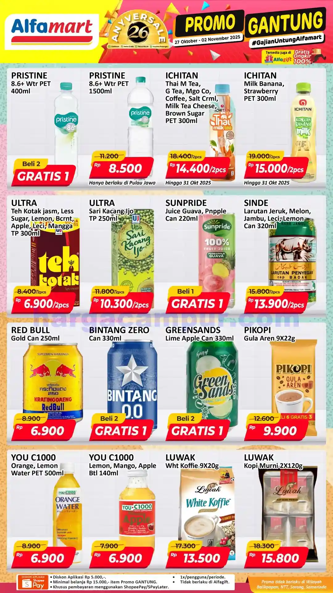 Katalog promo gantung Alfamart minggu ini berlaku mulai 27 Oktober hingga 2 November 2025, dengan diskon menarik pada produk-produk yang banyak dibutuhkan keluarga. Tanpa perlu berpindah ke banyak toko, sekali datang ke Alfamart, rencana belanja mingguan bisa terpenuhi.