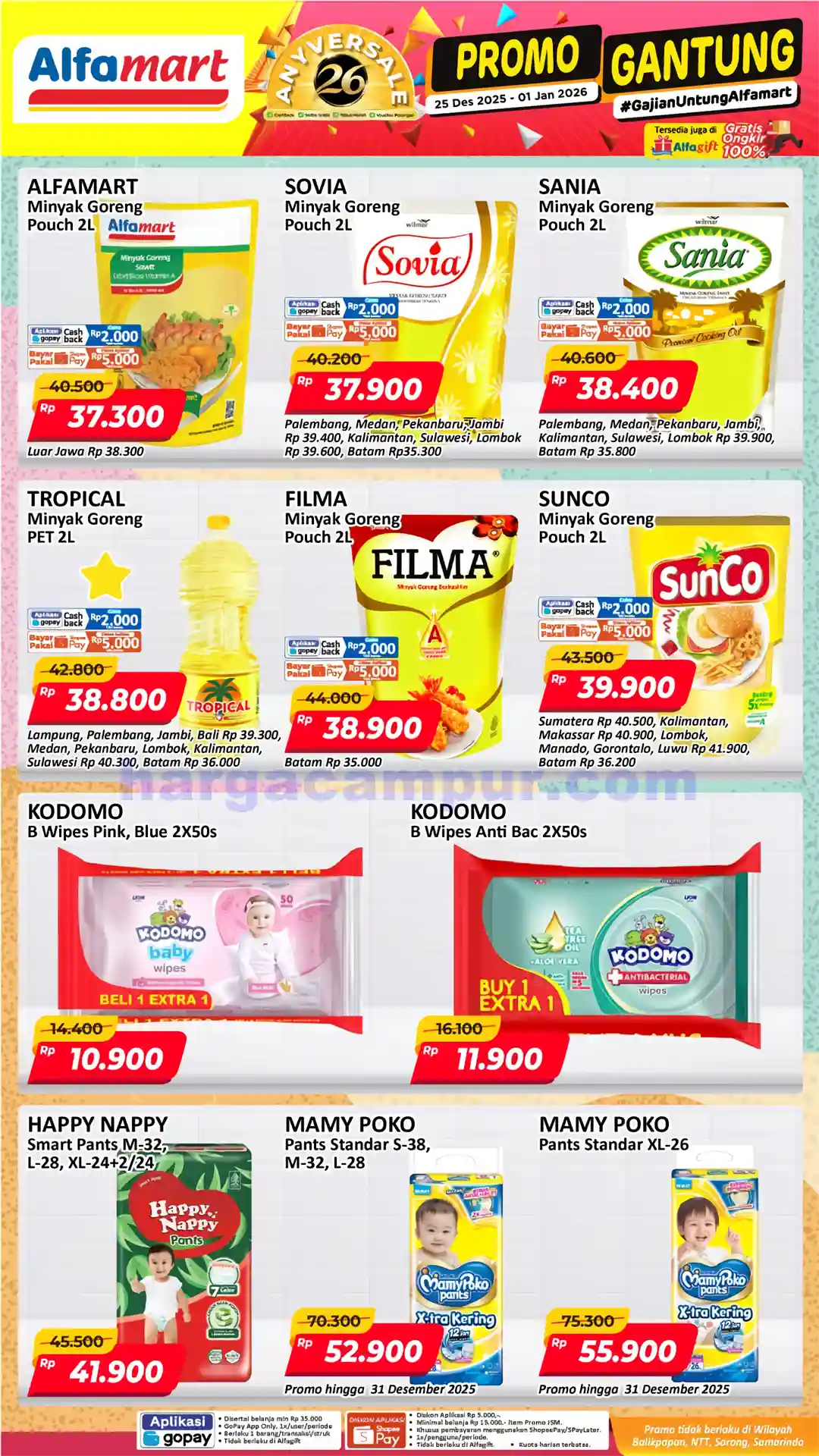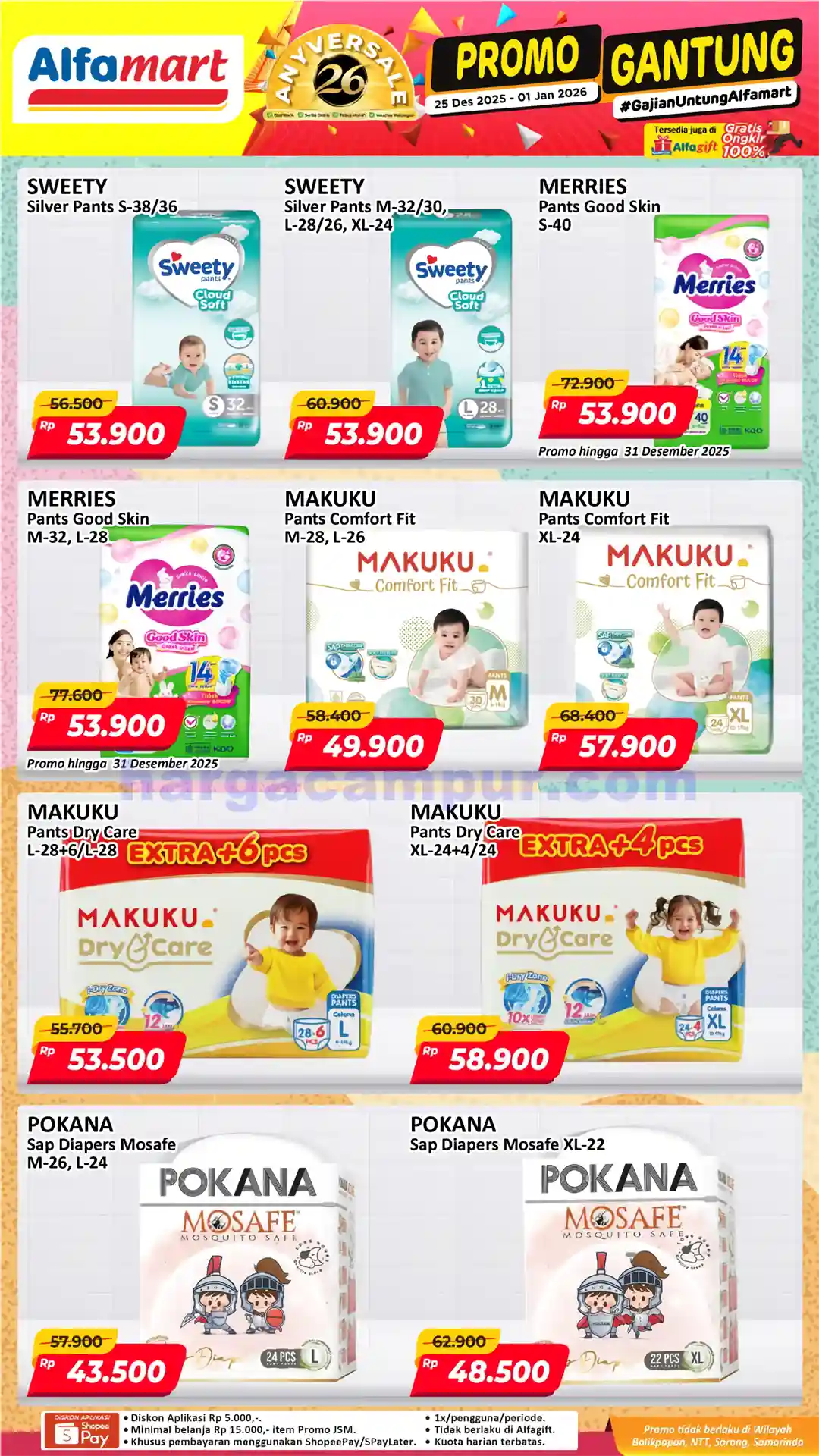 Promo Gantung Alfamart periode 25 Desember 2025 – 1 Januari 2026 adalah momen emas untuk belanja kebutuhan rumah tangga dengan harga hemat tapi kualitas tetap terjaga. Produk-produk penting dari bahan pokok hingga kebutuhan bayi tersedia dalam diskon yang benar-benar membantu mempertahankan anggaran keluarga.