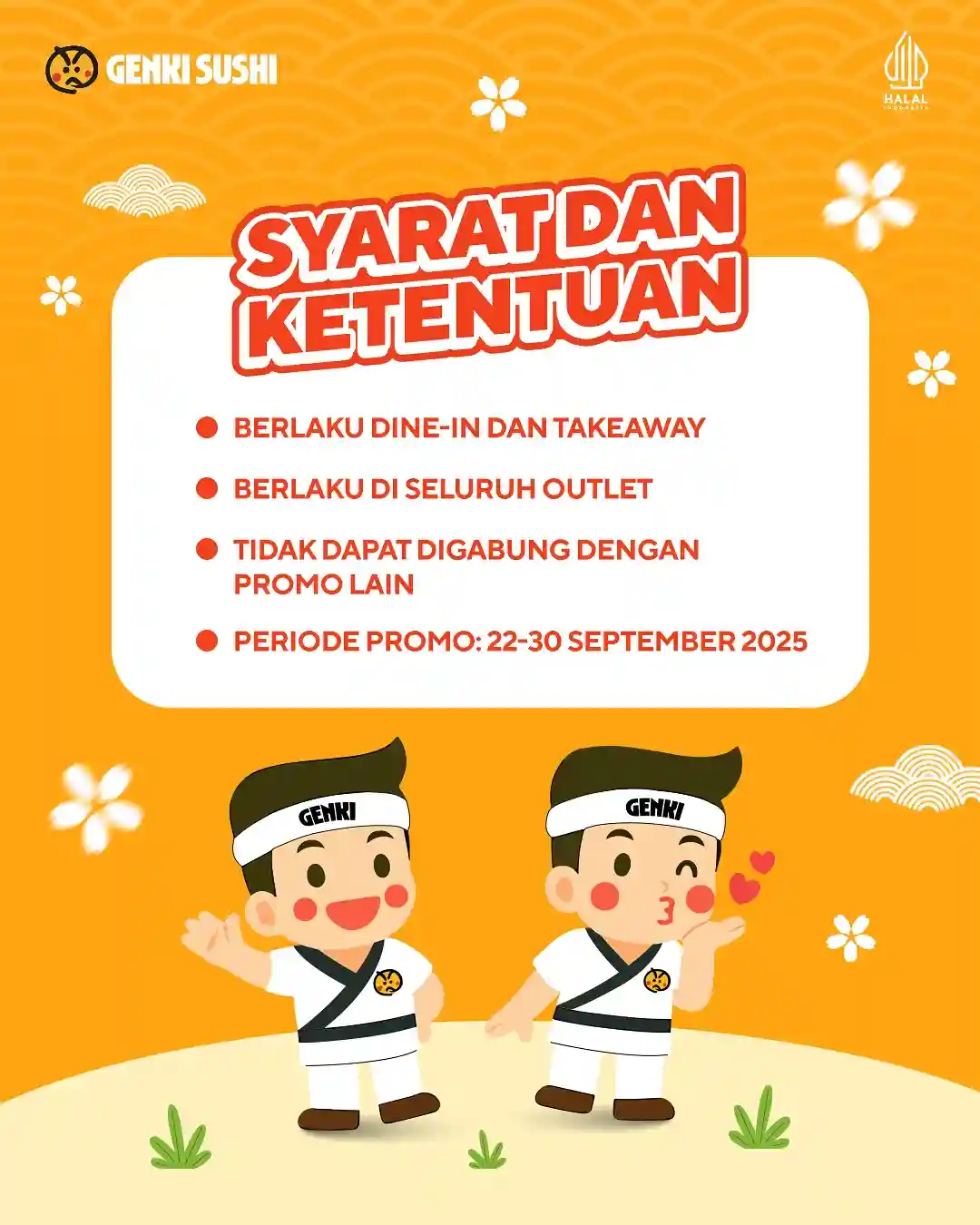 - Lokasi: Seluruh outlet Genki Sushi di Indonesia.