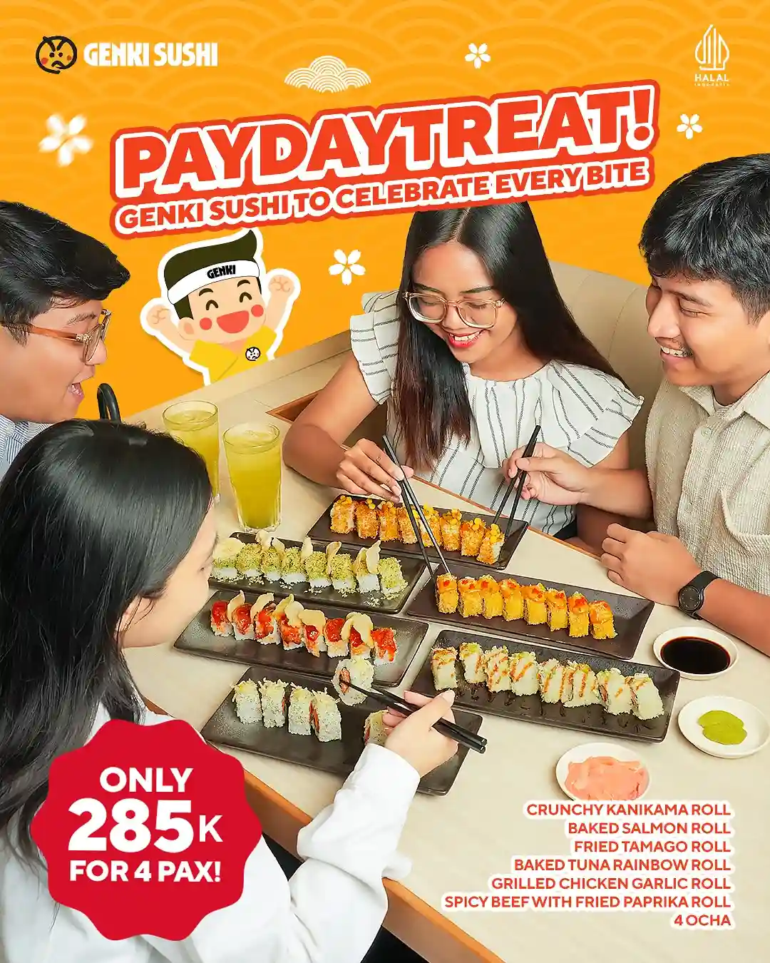 Akhir bulan selalu menjadi momen yang ditunggu banyak orang. Setelah bekerja keras, menerima gaji tentu menghadirkan rasa lega sekaligus semangat untuk memberikan apresiasi pada diri sendiri. Salah satu bentuk self reward yang paling populer adalah makan enak bersama teman atau keluarga. Dan kali ini, ada kabar gembira bagi pecinta kuliner Jepang, khususnya sushi. Genki Sushi menghadirkan promo spesial Payday 4 Pax dengan harga hanya Rp285 ribu.