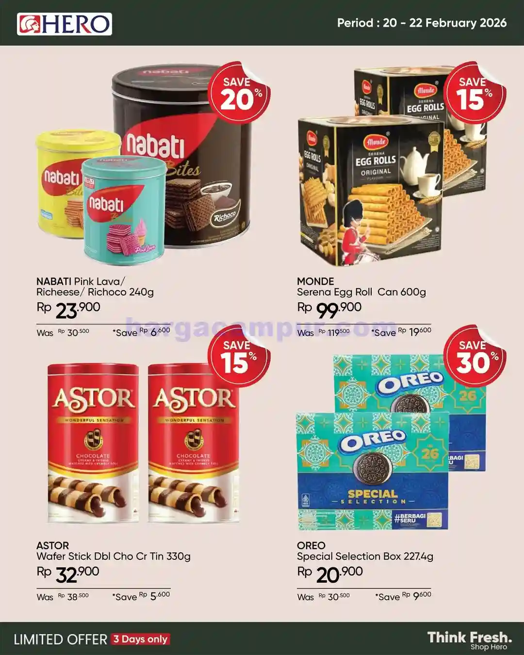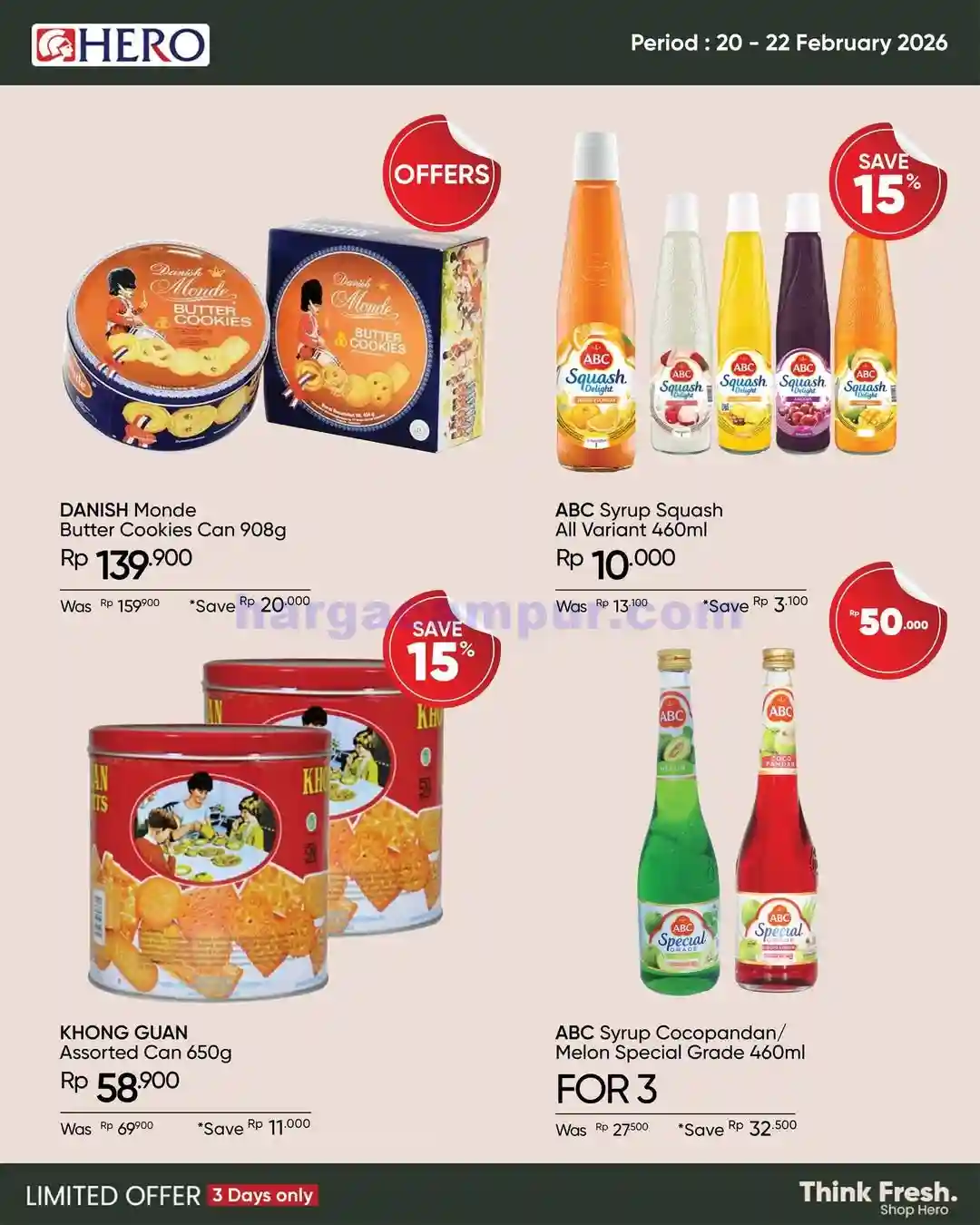 Pada periode 20 sampai 22 Februari 2026 ini, Hero Supermarket menawarkan berbagai diskon menarik yang mencakup kebutuhan dapur, produk segar, makanan kemasan, hingga kebutuhan rumah tangga lainnya. Promo ini hanya berlangsung selama tiga hari, jadi penting untuk langsung meluangkan waktu belanja di periode tersebut.