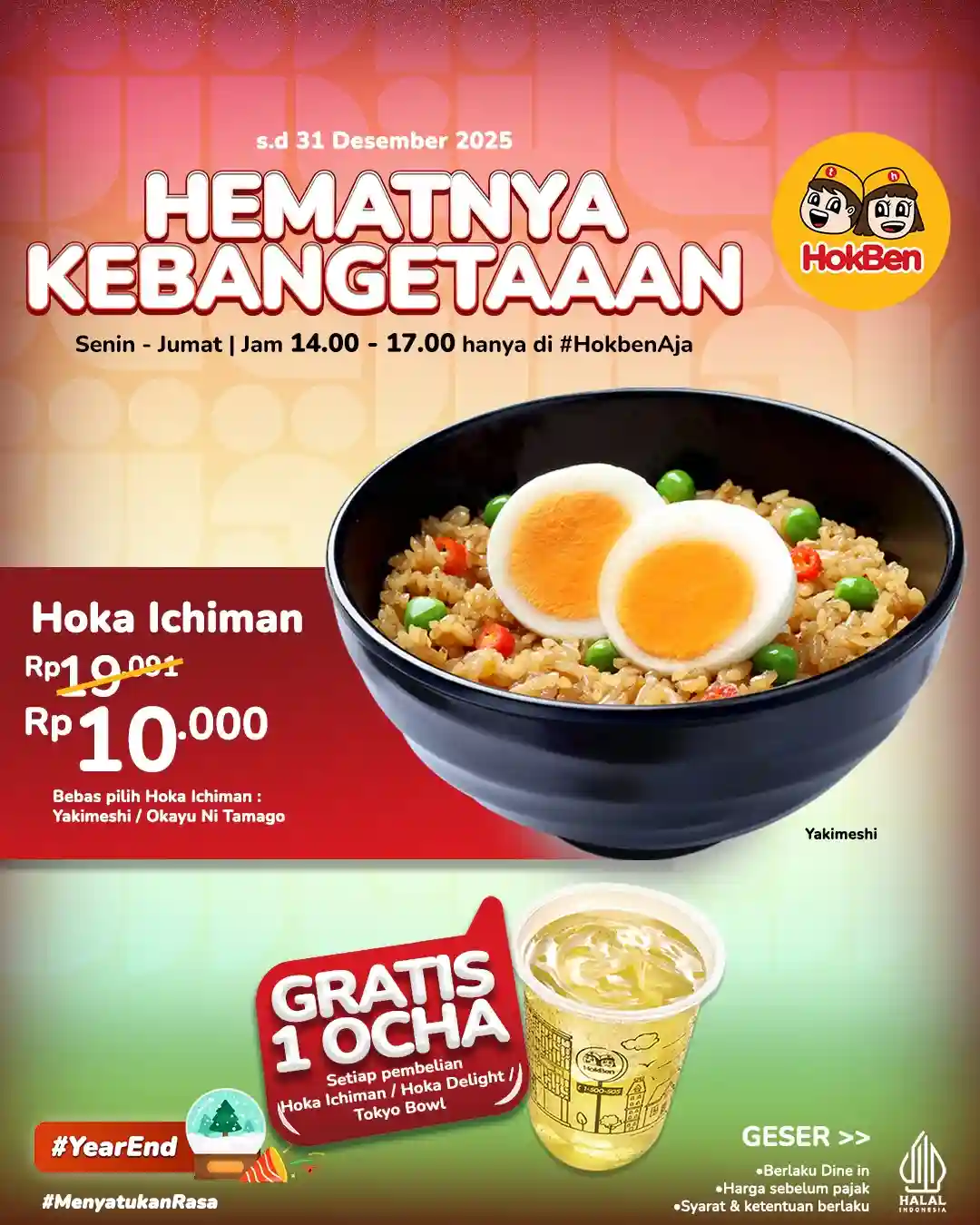 Promo ini berlaku terbatas mulai 17 sampai 23 Oktober 2025, dan hanya bisa didapatkan melalui aplikasi resmi HokBenAja atau website www.hokben.co.id. Jadi, buat kamu yang belum punya aplikasinya, sekarang saatnya download biar nggak ketinggalan promo spesial yang satu ini.