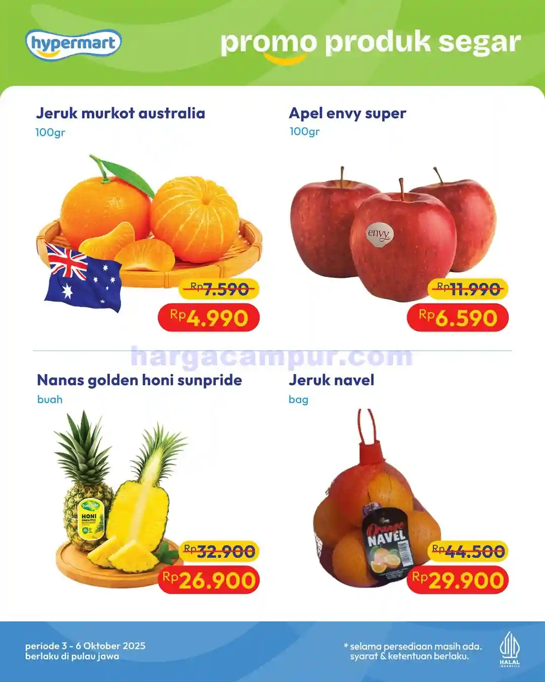 Hypermart terkenal dengan promonya yang variatif dan terjangkau, terutama untuk produk segar. Berikut ini beberapa produk yang masuk dalam katalog promo 3 – 5 Oktober 2025: