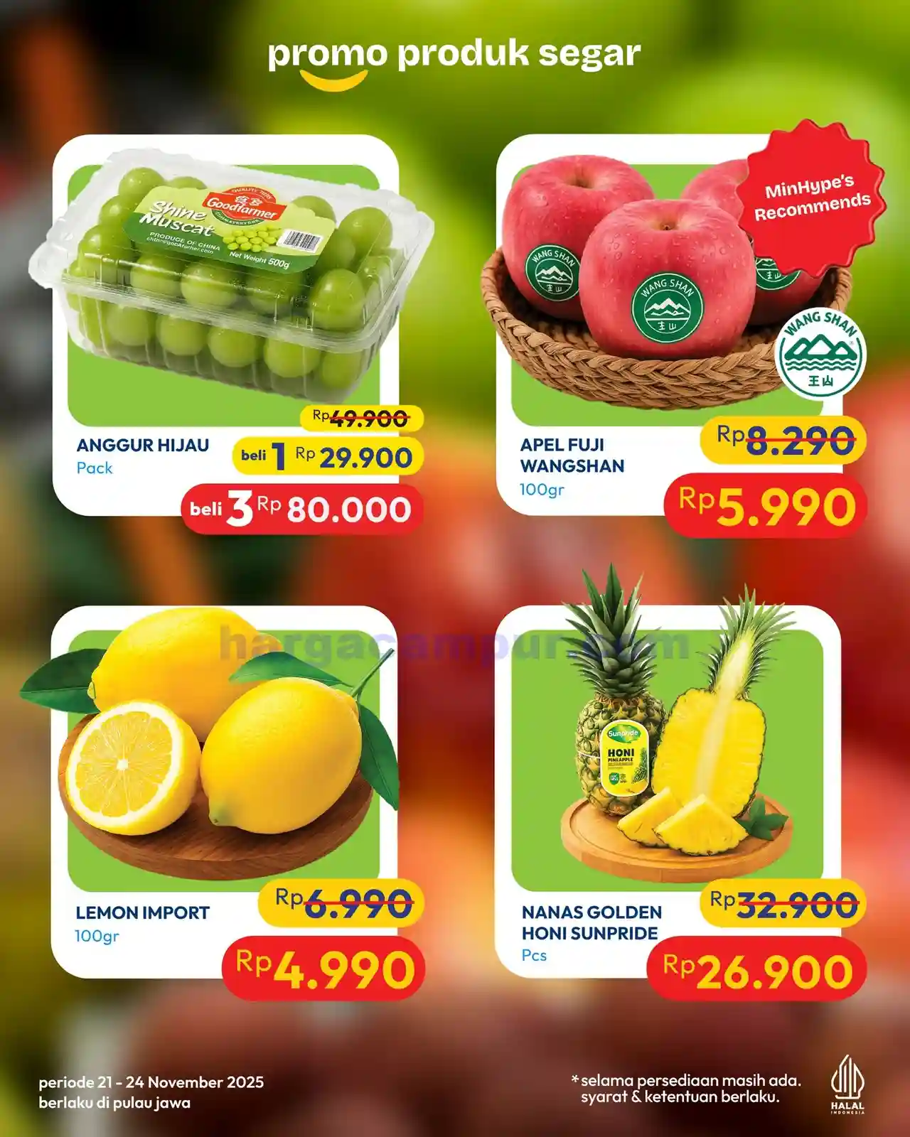 Hypermart terkenal dengan promonya yang variatif dan terjangkau, terutama untuk produk segar. Berikut ini beberapa produk yang masuk dalam katalog promo 21 – 23 November 2025: