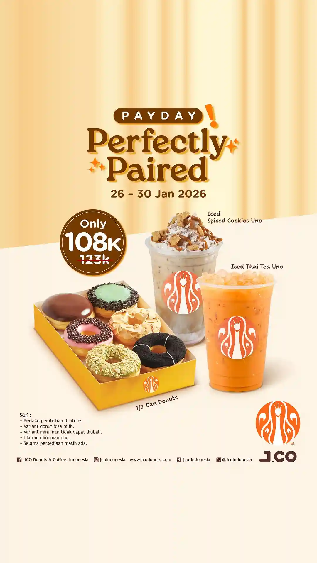 • Berlaku di seluruh store JCO Indonesia yang berpartisipasi selama periode promo.