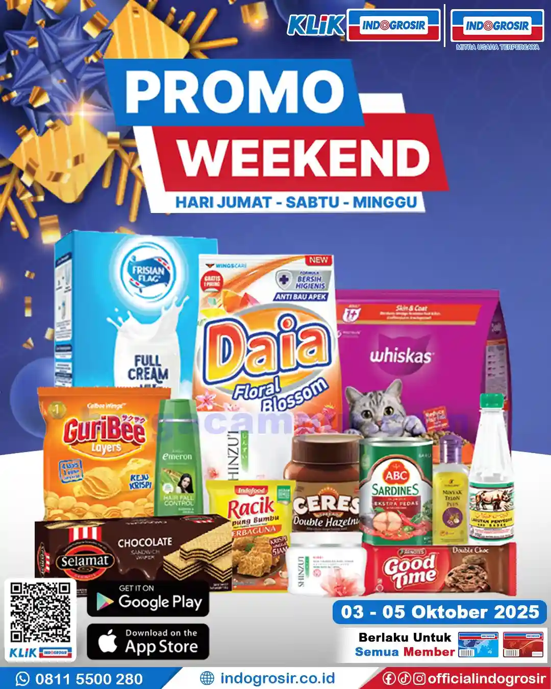 Promo jsm indogrosir weekend ini hadir untuk anda yang biasanya belanja saat akhir pekan. Dengan begitu anda bisa belanja di indogrosir saat akhir pekan dengan nyaman dan juga leluasa. Produk yang di promosikan juga cukup banyak dan tidak jauh dari kebutuhan masyarakat pada umum nya.