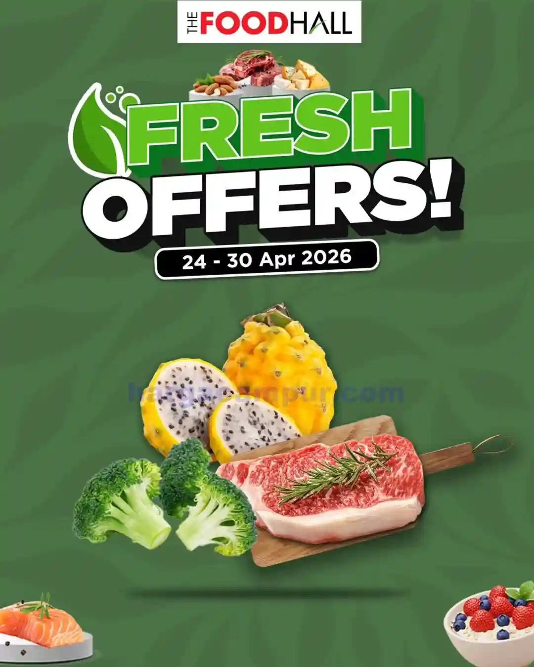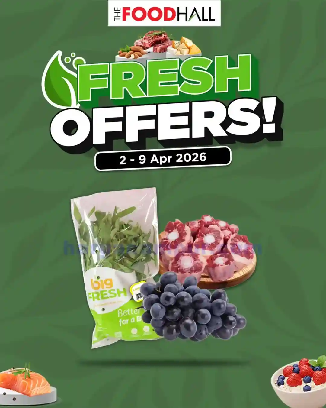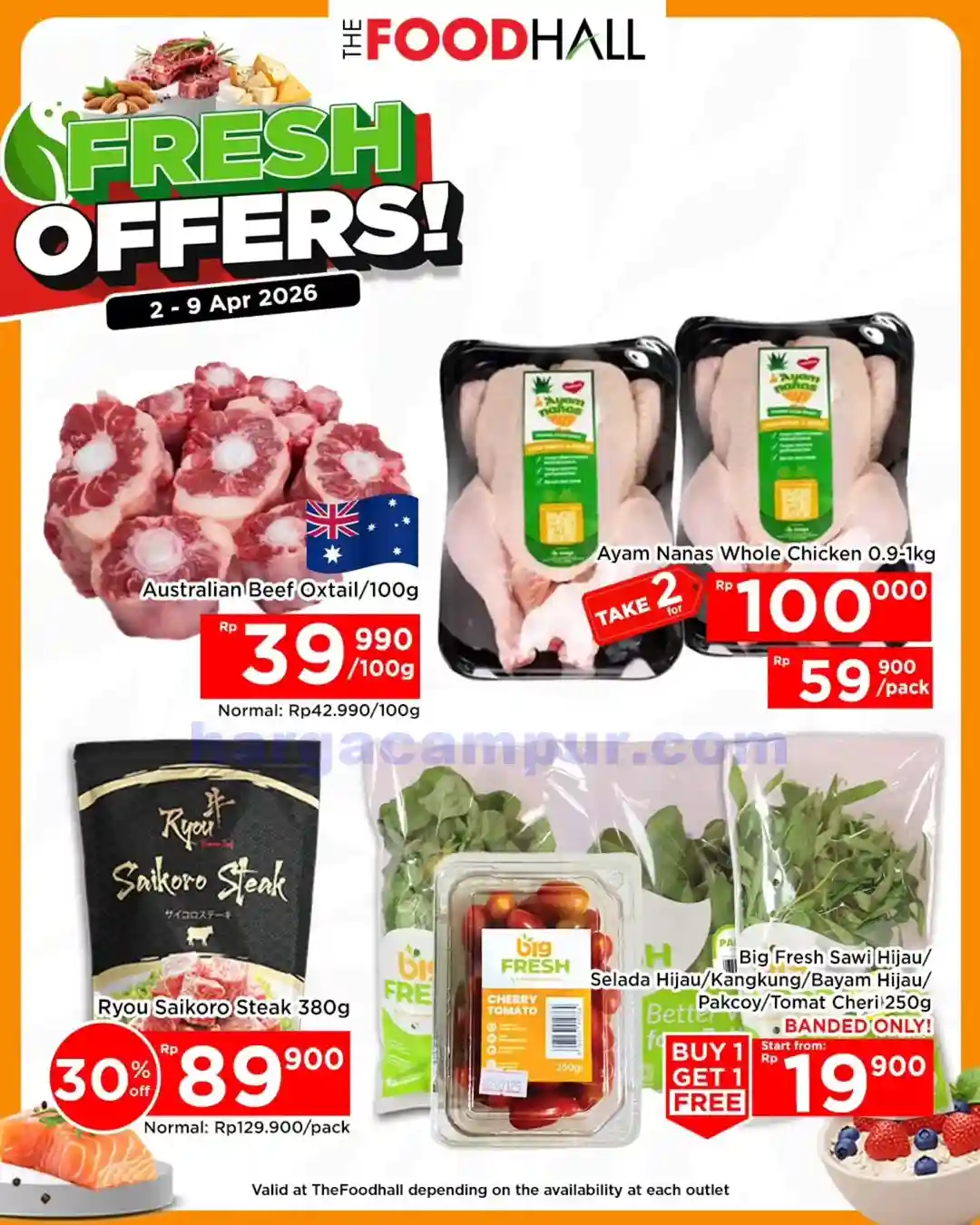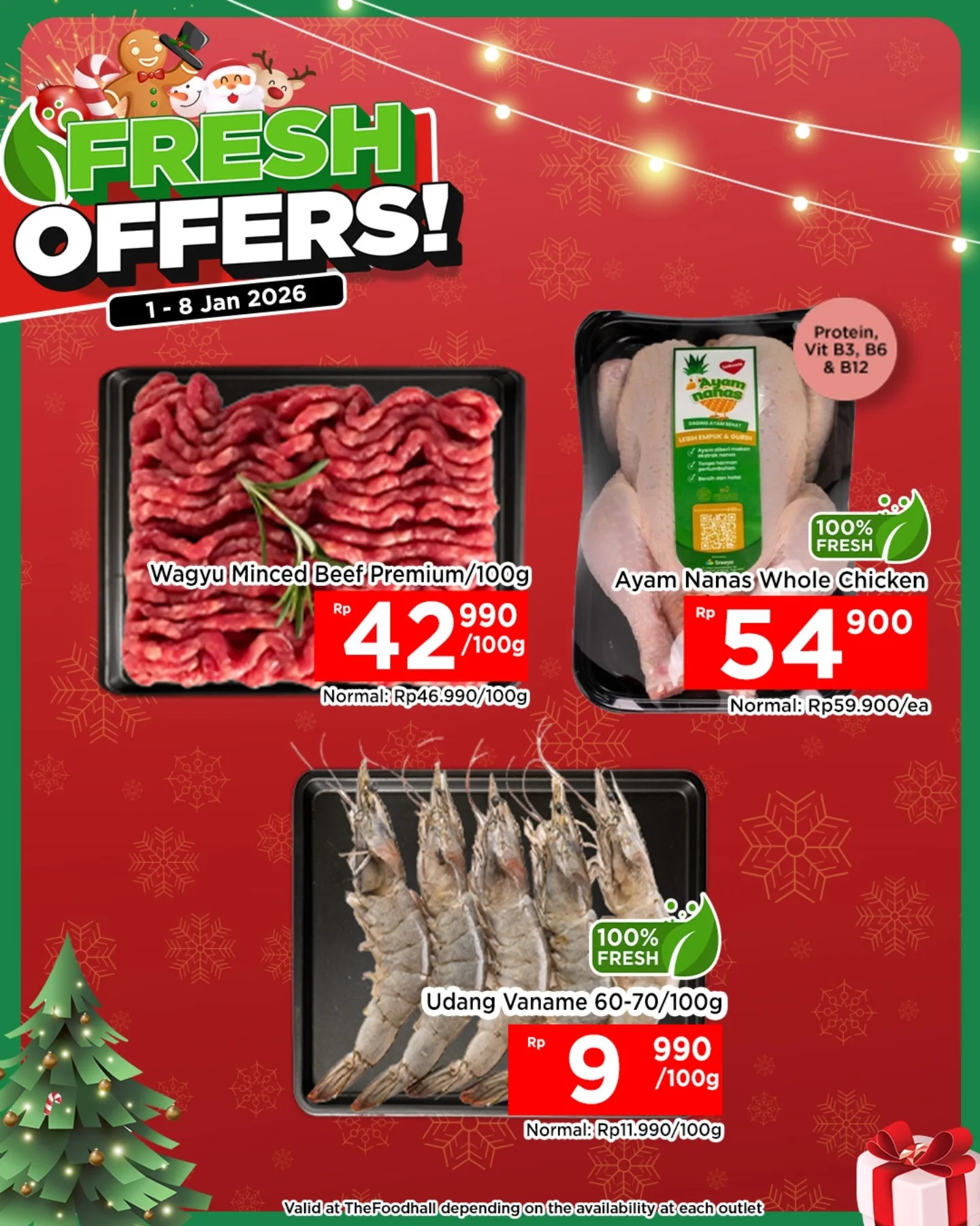 - Daging Fresh. Salah satu bahan masakan yang ada di thefoodhall ini yaitu daging-dagingan segar. Saat akhir pekan produk daging-dagiangan fresh di akan di diskon dengan harga yang jauh lebih murah dari biasanya. beberapa produk daging ini seperti daging ayam, daging sapi, dan juga ikan segar.