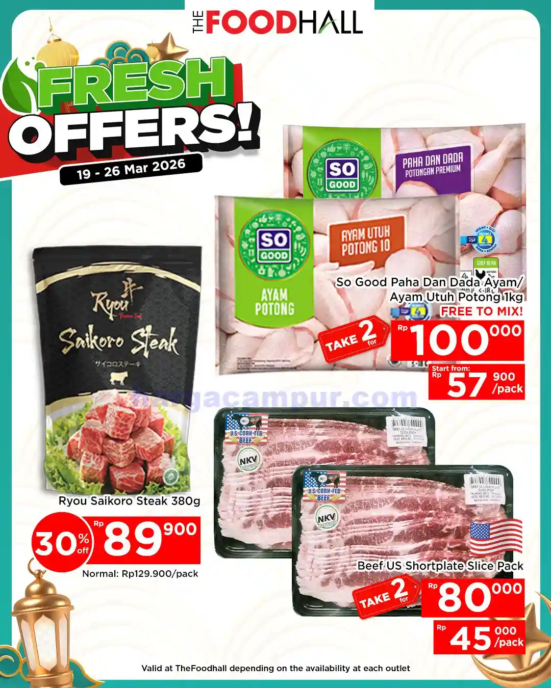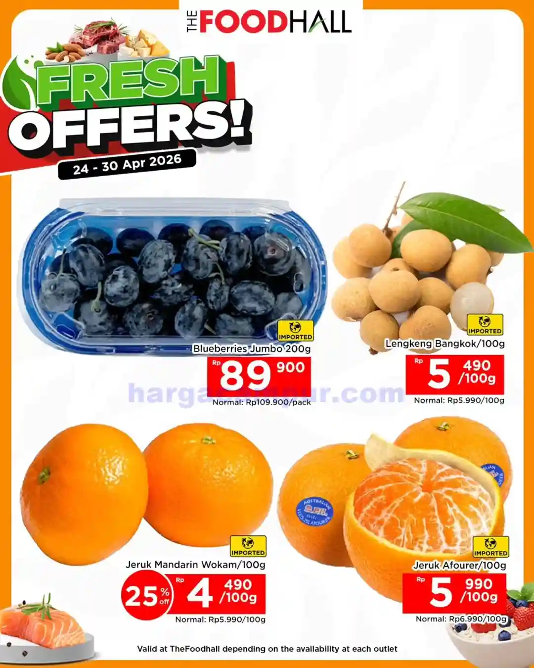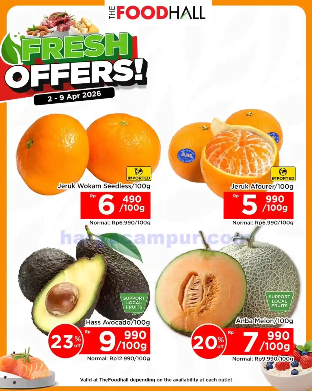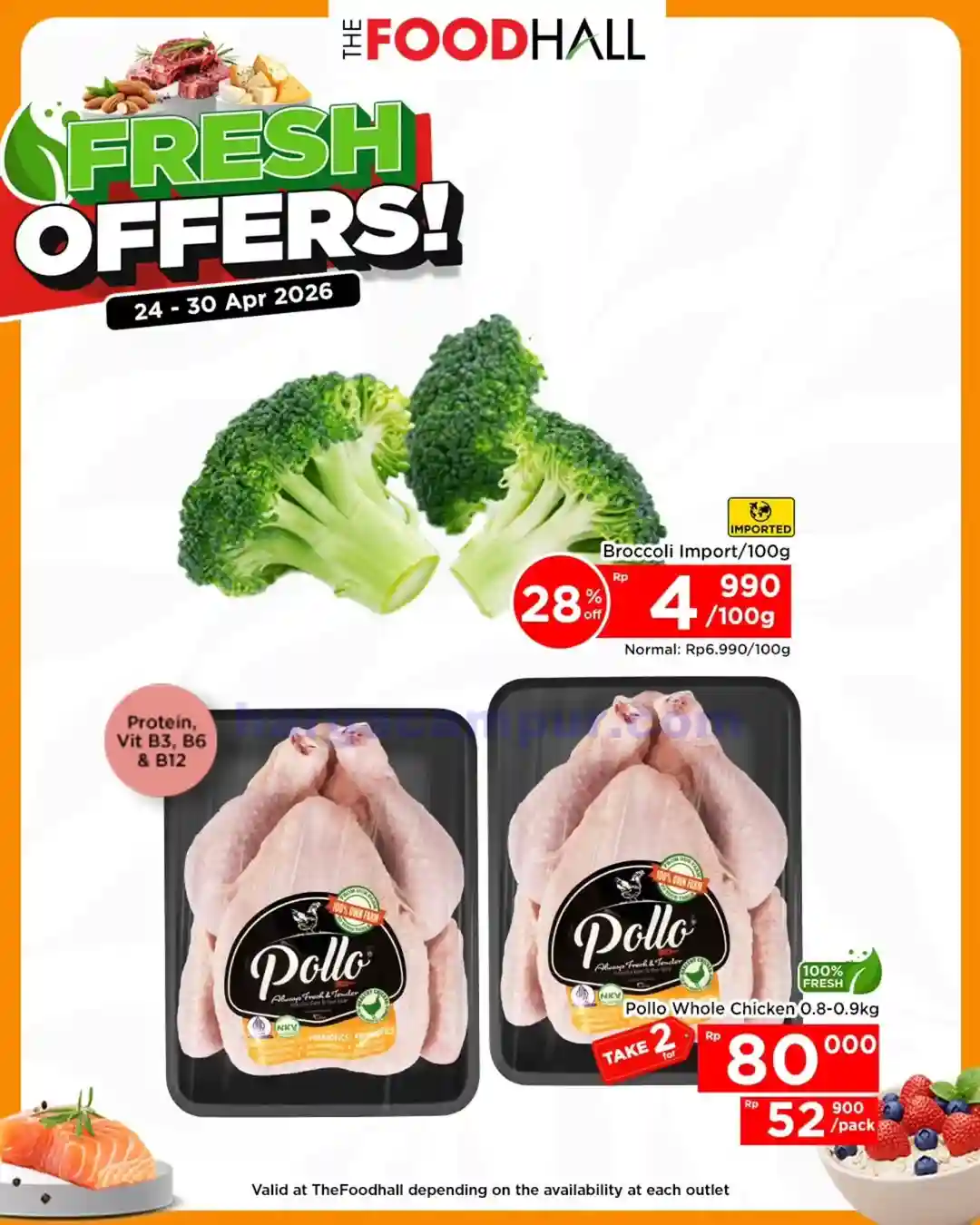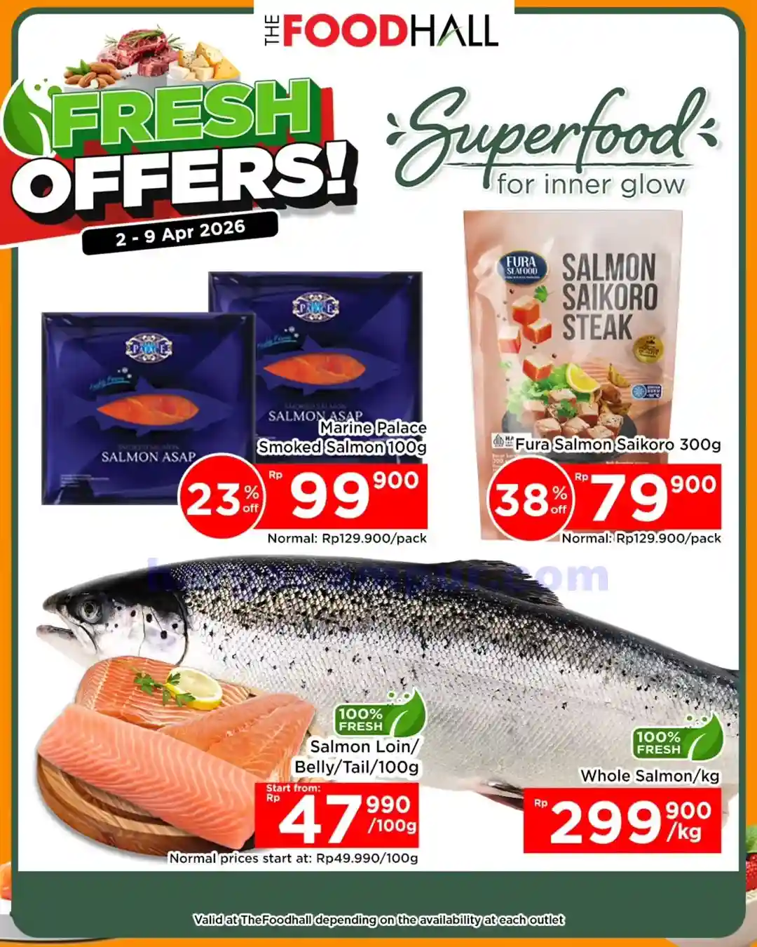 - Daging Fresh. Salah satu bahan masakan yang ada di thefoodhall ini yaitu daging-dagingan segar. Saat akhir pekan produk daging-dagiangan fresh di akan di diskon dengan harga yang jauh lebih murah dari biasanya. beberapa produk daging ini seperti daging ayam, daging sapi, dan juga ikan segar.